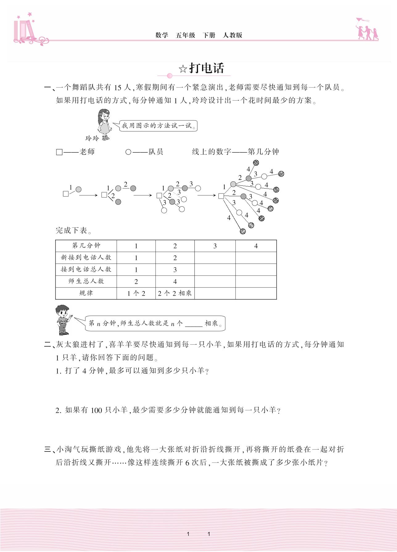 2021下册五年级数学人教版 6 分数的加法和减法——打电话