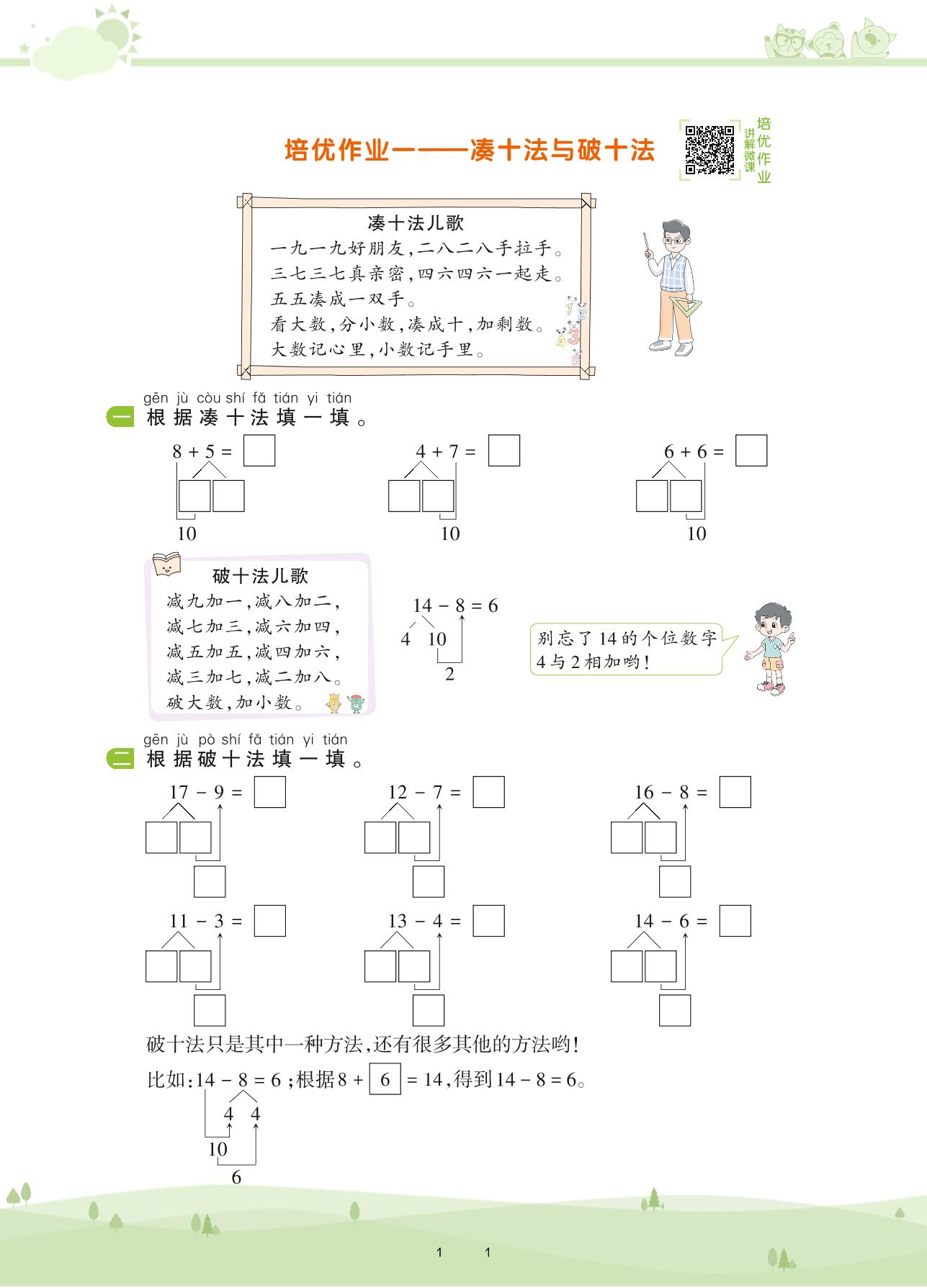 2021下册一年级数学北师版 第一单元 加与减(一)——培优作业一 凑十法与破十法