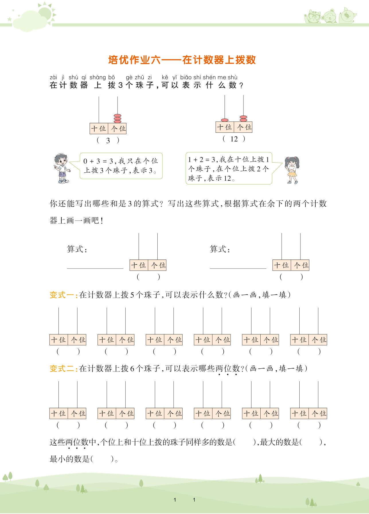 2021下册一年级数学北师版 第三单元 生活中的数——培优作业六 在计数器上拨数