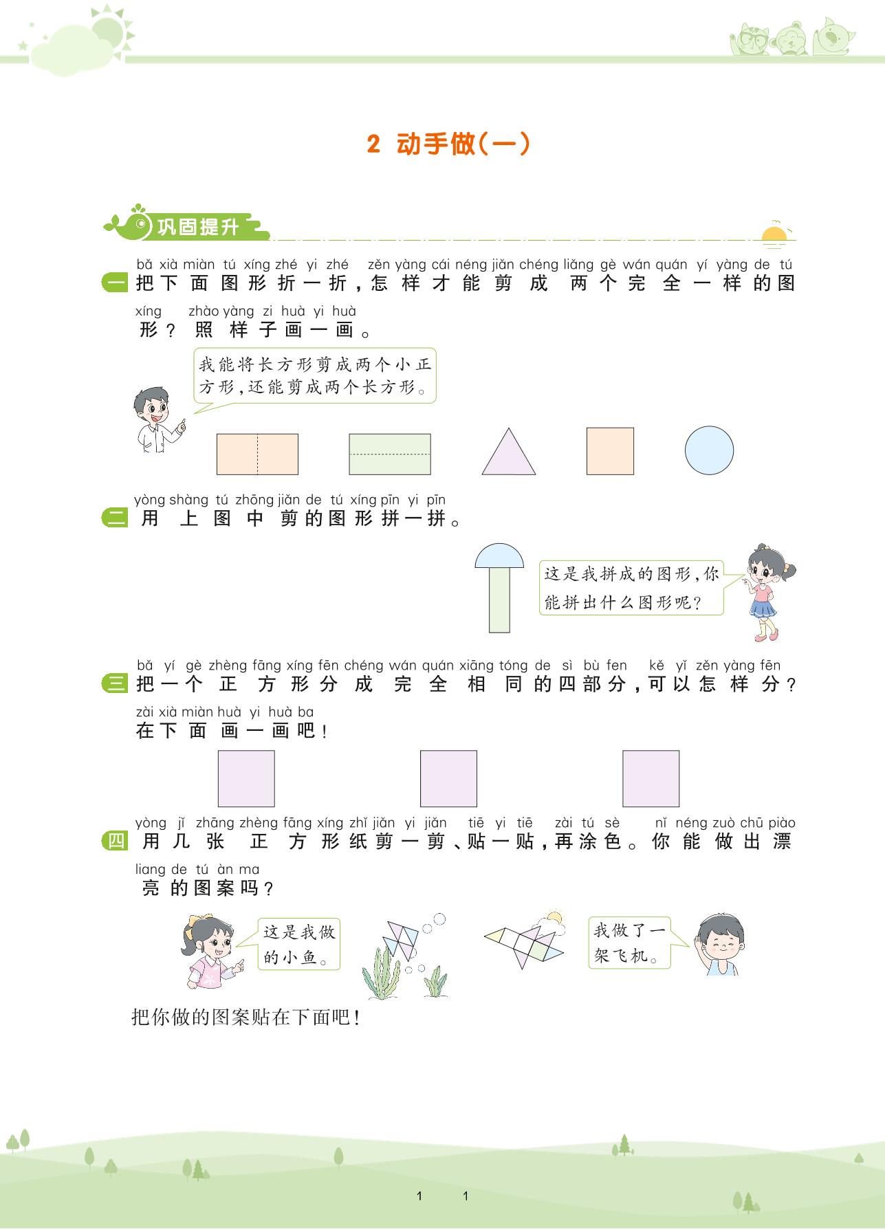 2021下册一年级数学北师版 第四单元 有趣的图形——2 动手做(一)