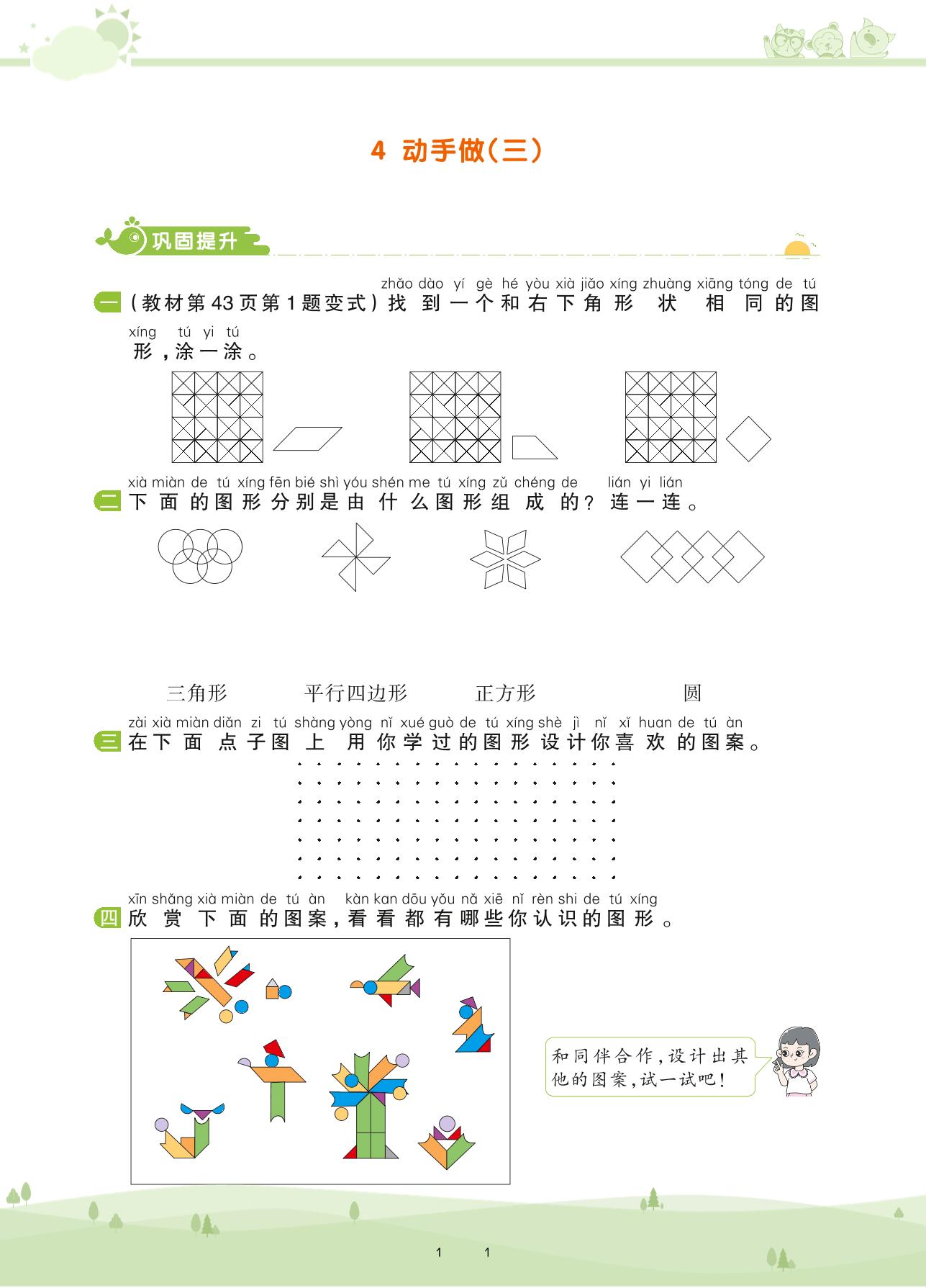 2021下册一年级数学北师版 第四单元 有趣的图形——4 动手做(三)