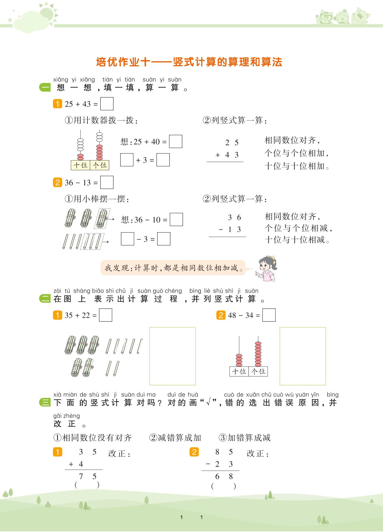 2021下册一年级数学北师版 第五单元 加与减(二)——培优作业十 竖式计算的算理和算法