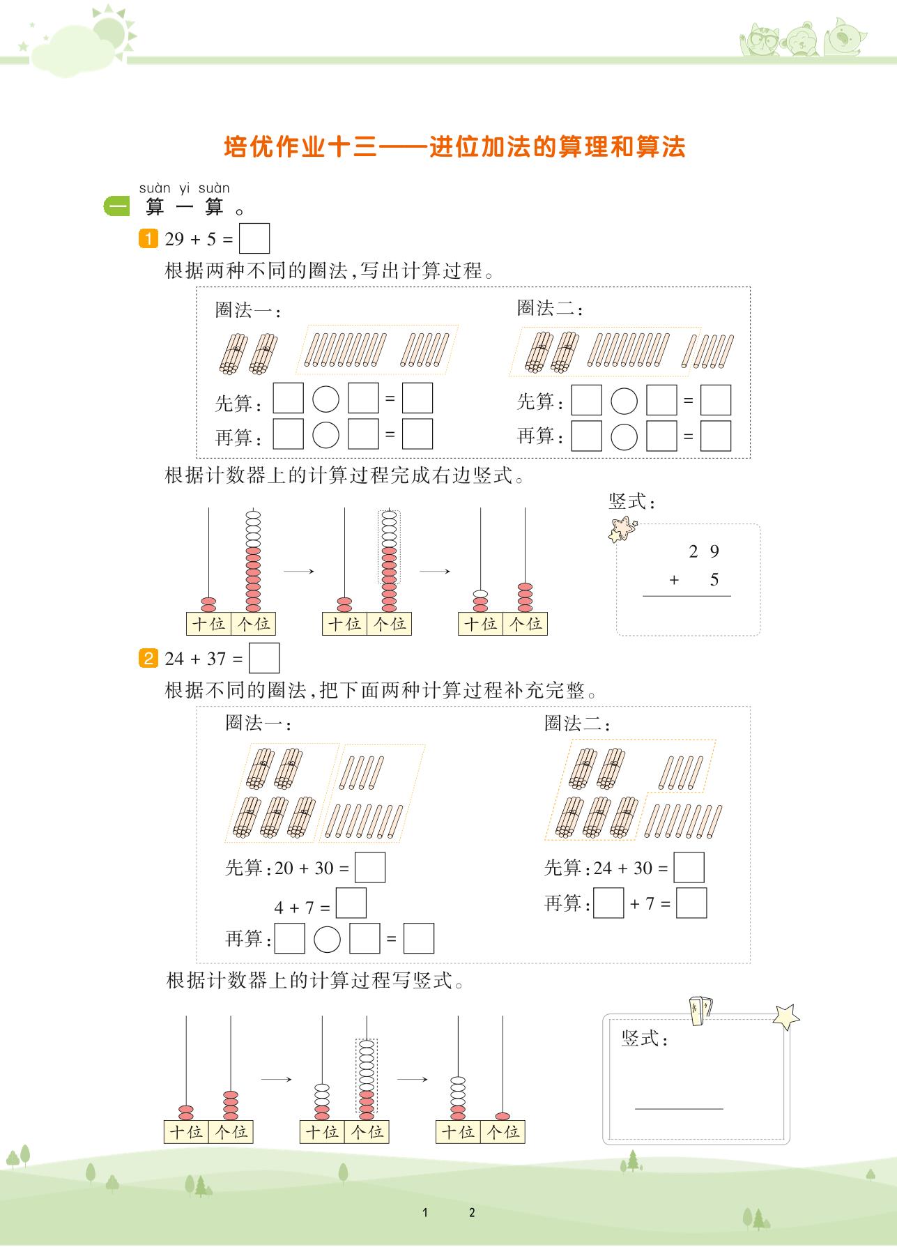 2021下册一年级数学北师版 第六单元 加与减(三)——培优作业十三 进位加法的算理和算法