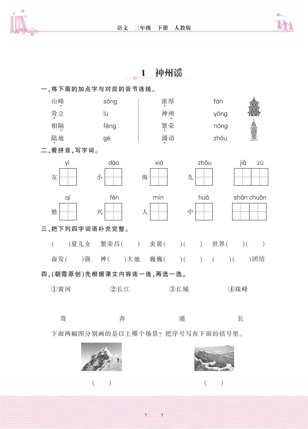 2021下册二年级语文人教版 第三单元 识字——1 神州谣