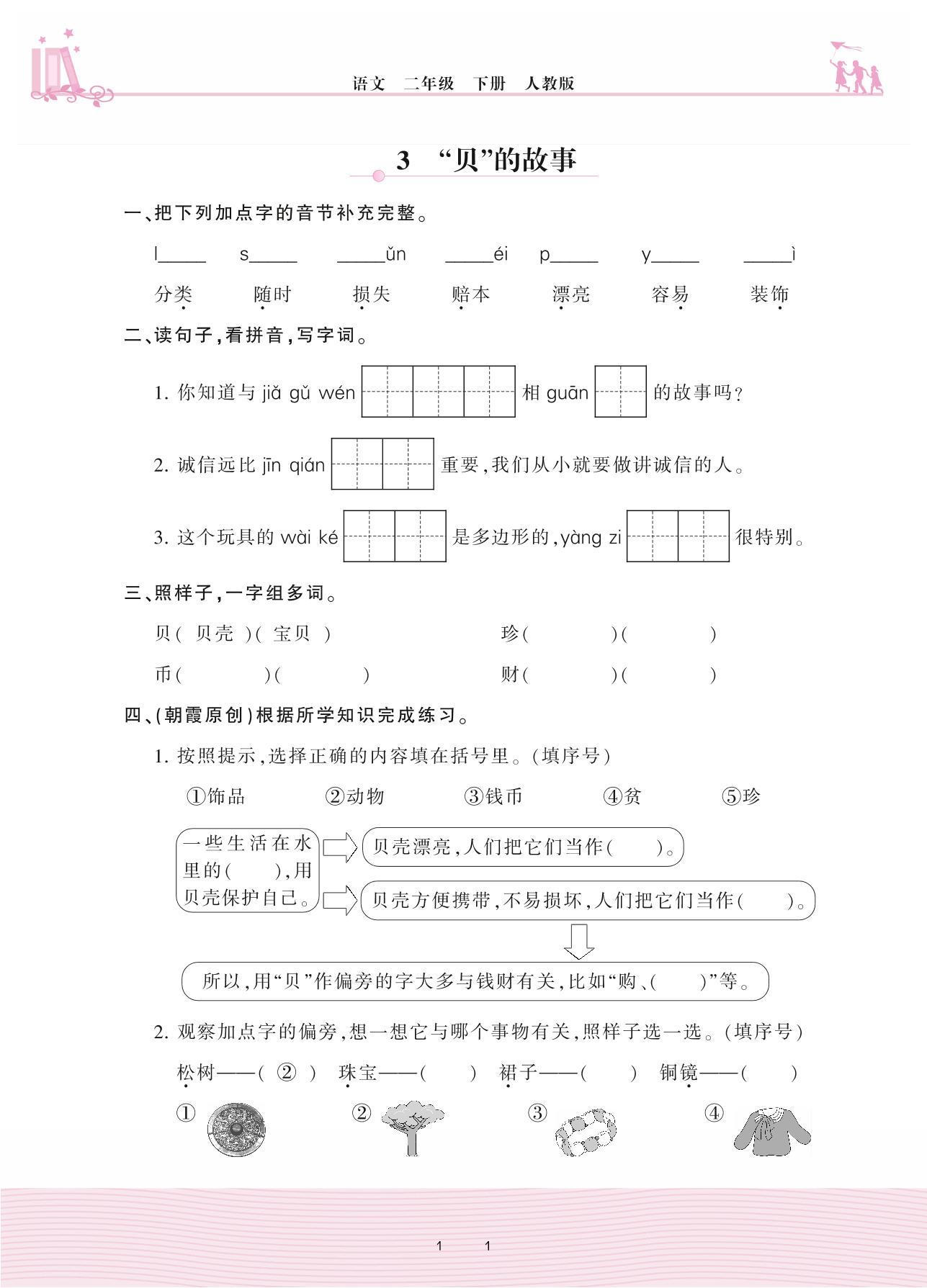 2021下册二年级语文人教版 第三单元 识字——3 “贝”的故事