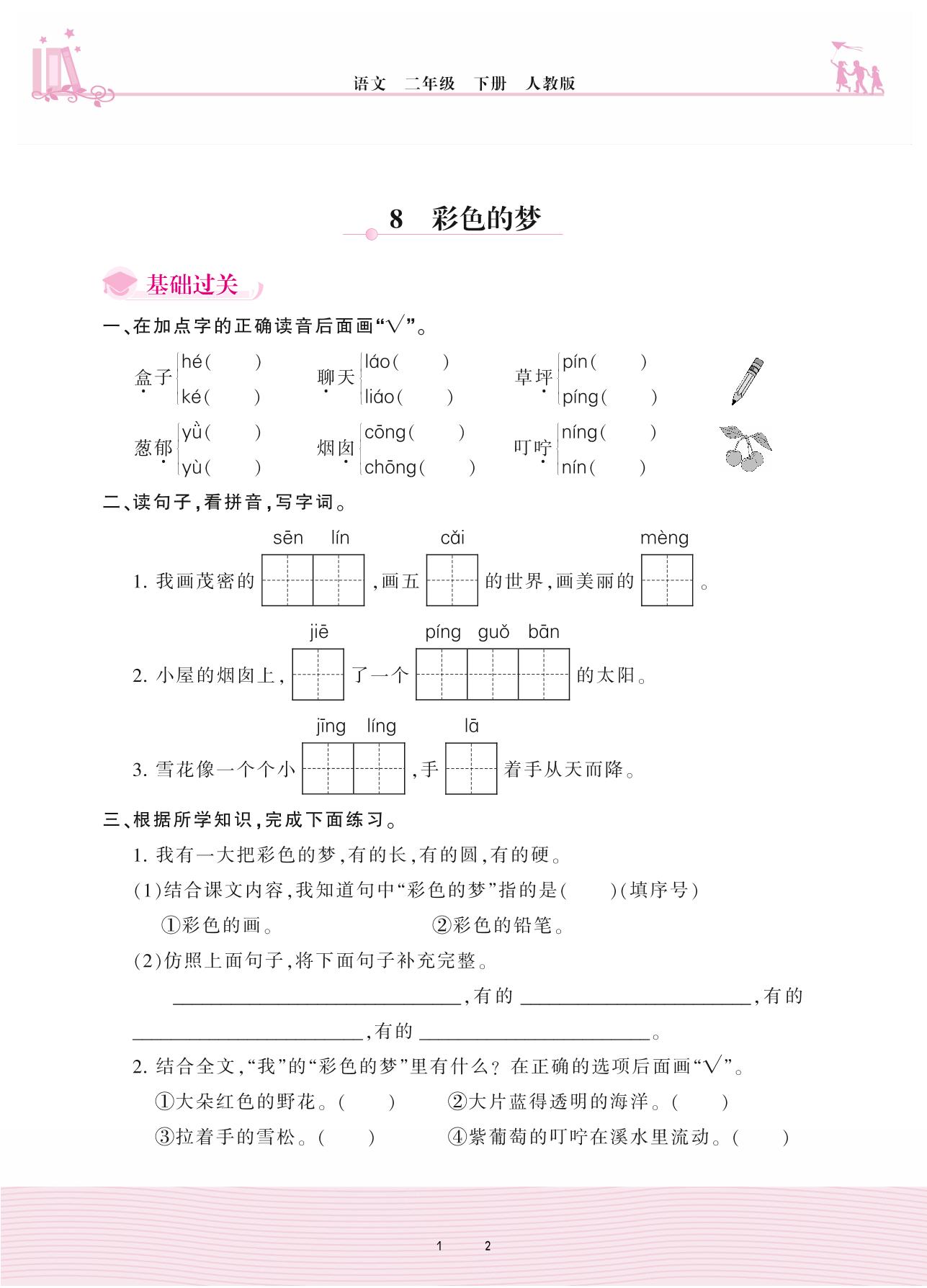 2021下册二年级语文人教版 第四单元 课文——8 彩色的梦