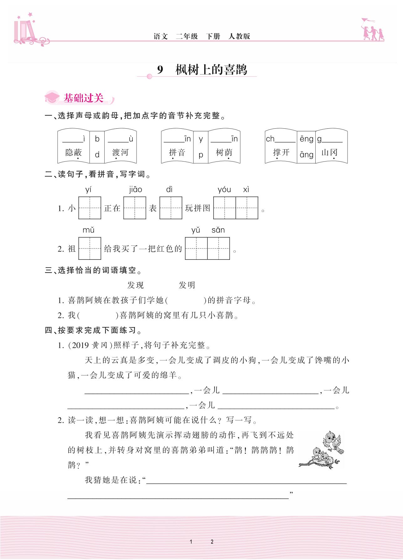 2021下册二年级语文人教版 第四单元 课文——9 枫树上的喜鹊