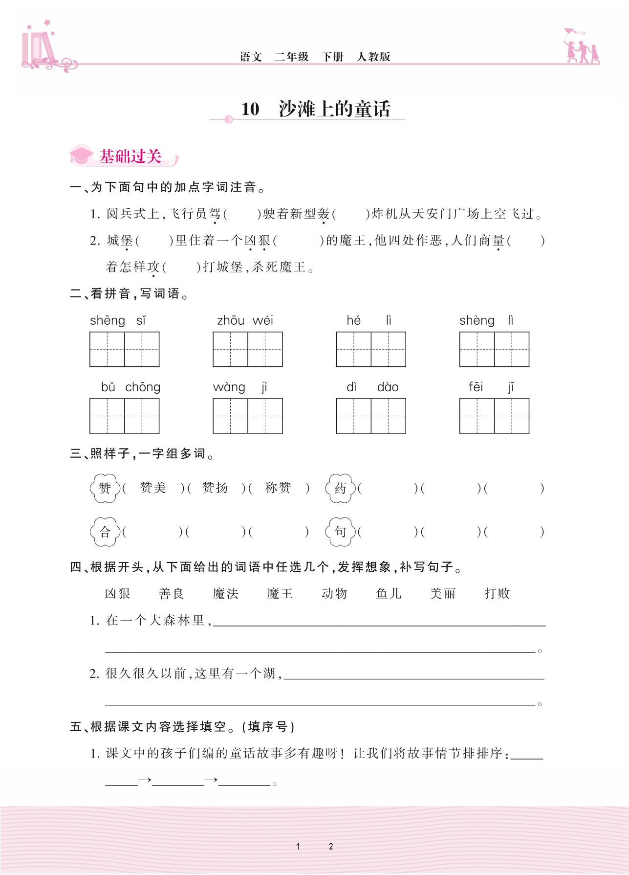 2021下册二年级语文人教版 第四单元 课文——10 沙滩上的童话