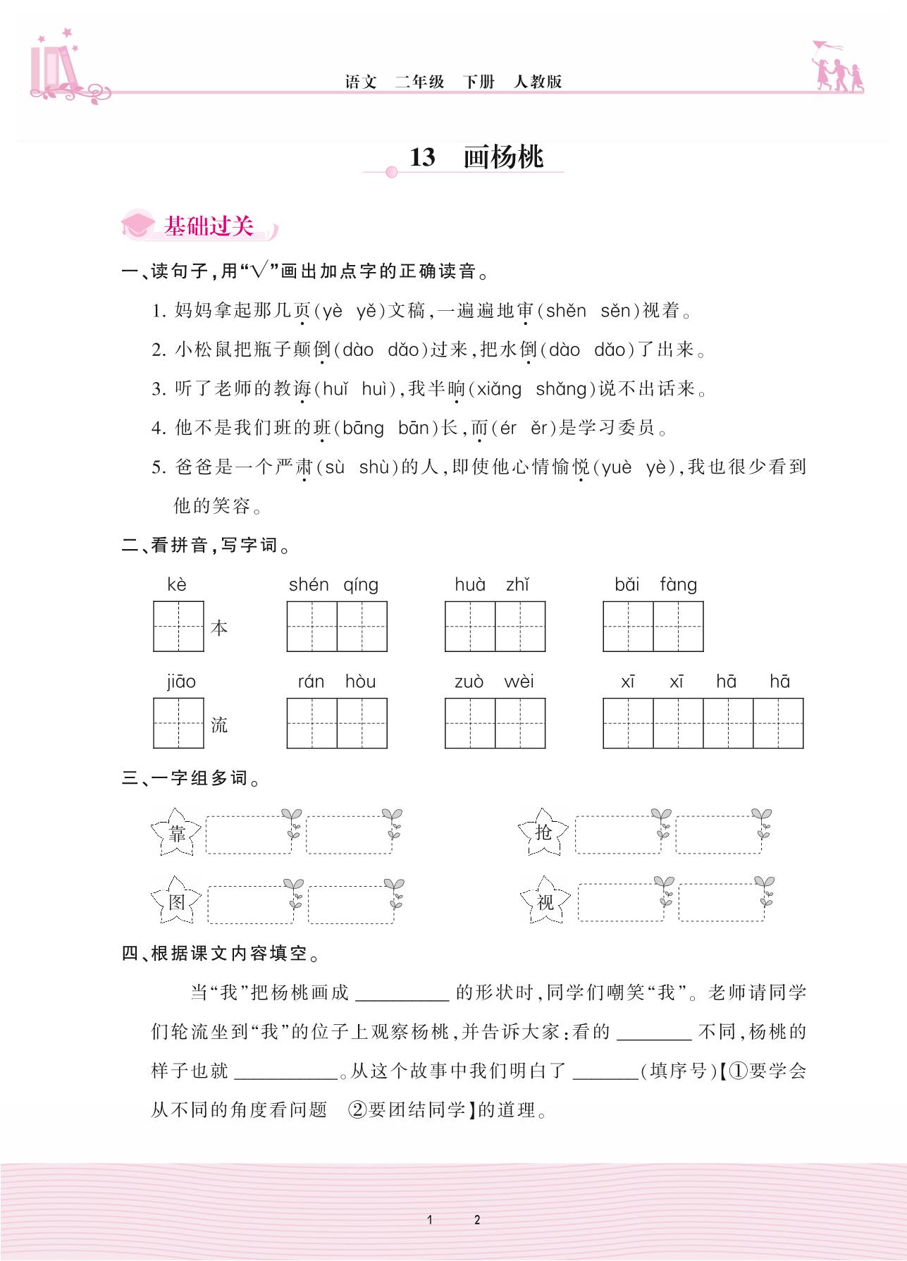 2021下册二年级语文人教版 第五单元 课文——13 画杨桃