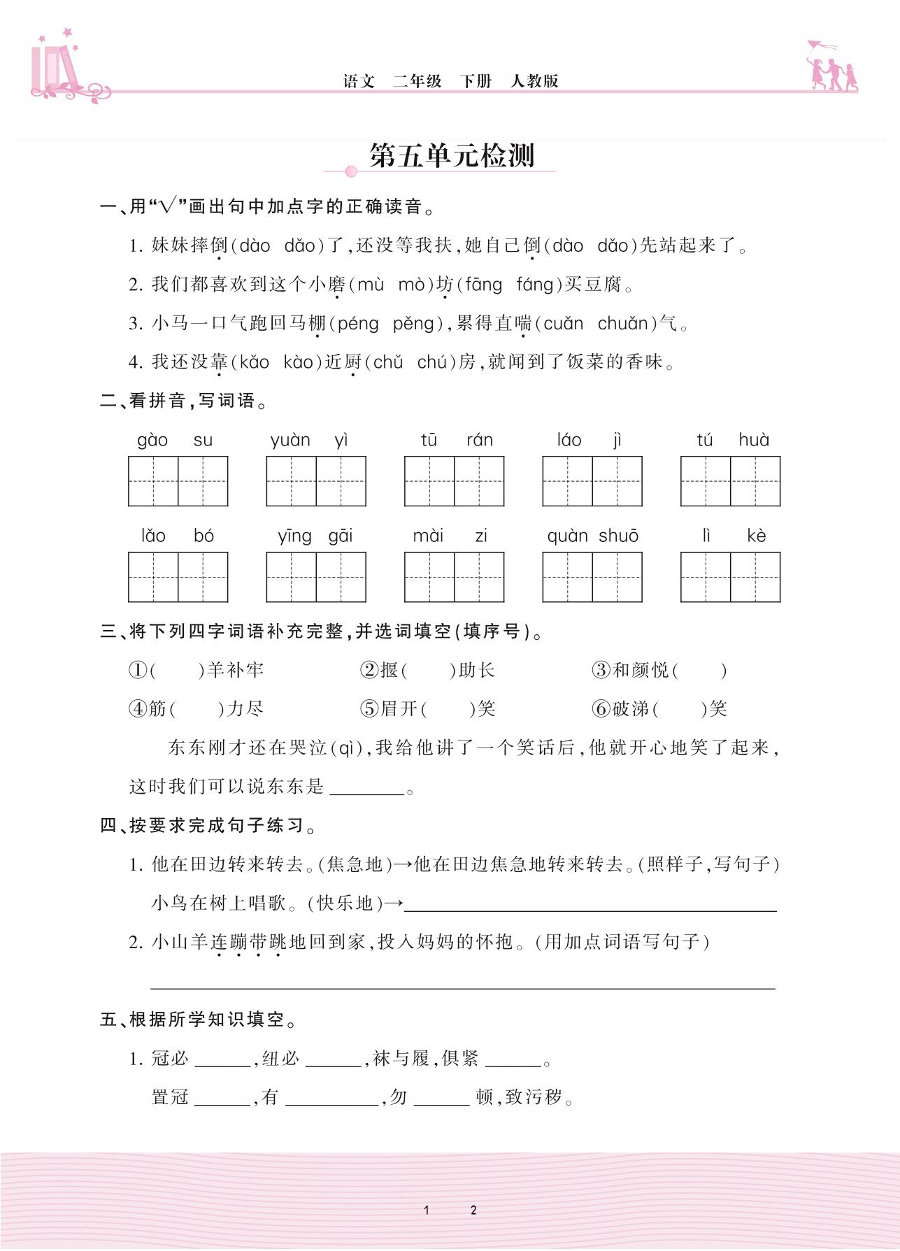 2021下册二年级语文人教版 第五单元 课文——第五单元检测