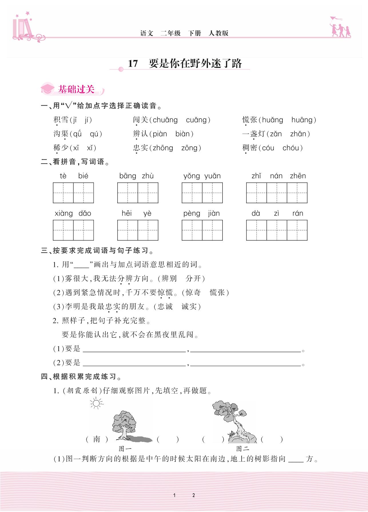 2021下册二年级语文人教版 第六单元 课文——17 要是你在野外迷了路