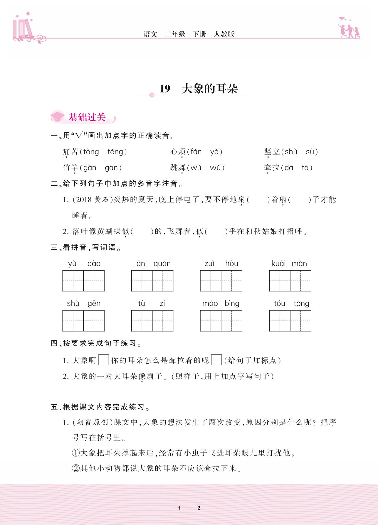 2021下册二年级语文人教版 第七单元 课文——19 大象的耳朵