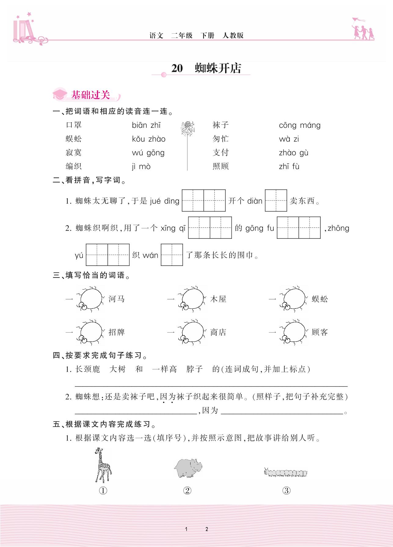 2021下册二年级语文人教版 第七单元 课文——20 蜘蛛开店
