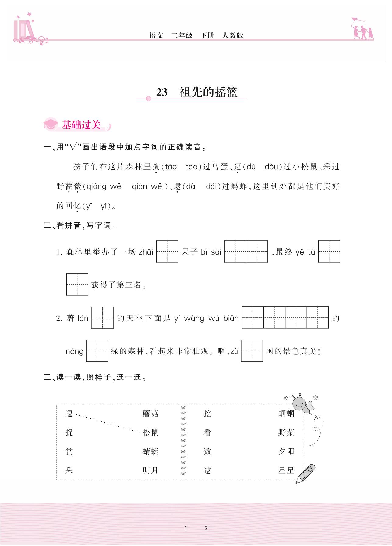 2021下册二年级语文人教版 第八单元 课文——23 祖先的摇篮