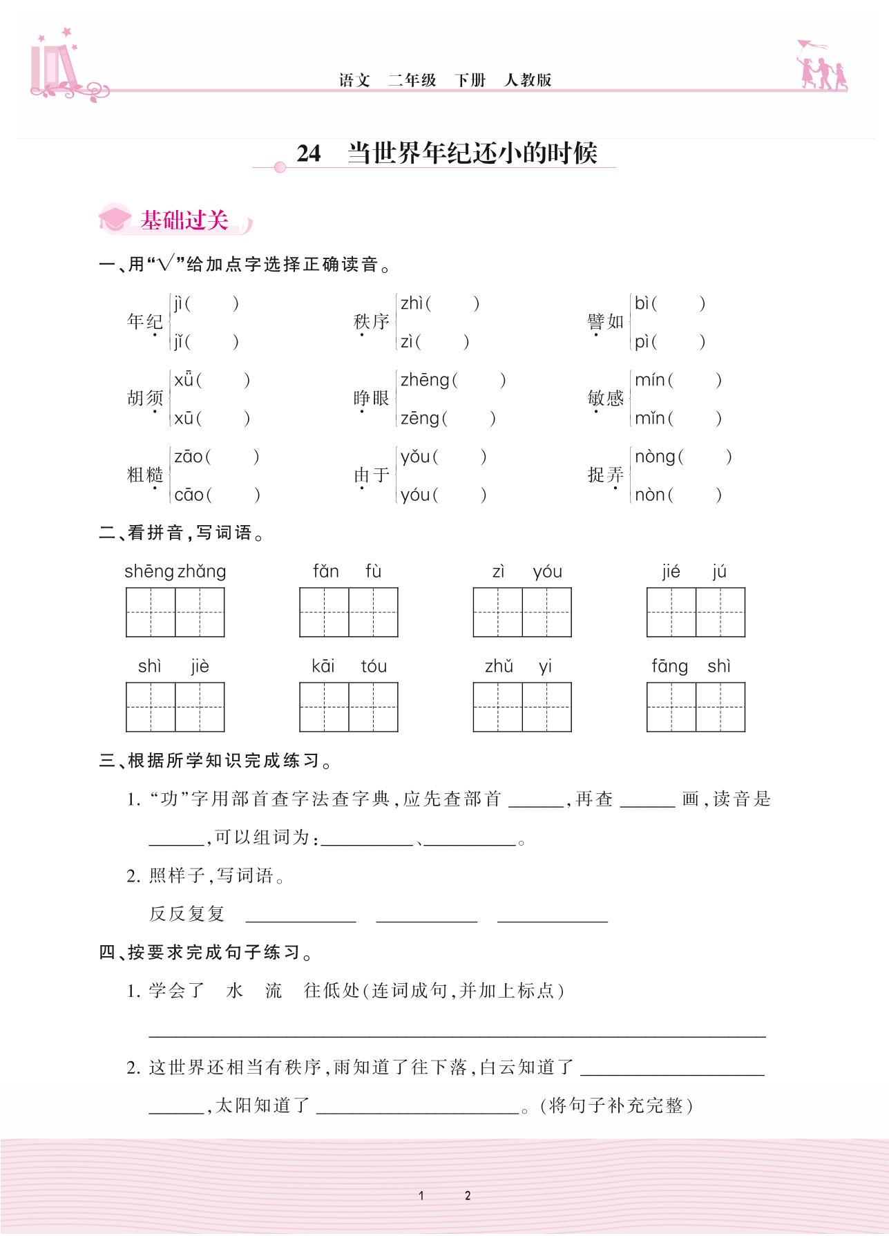 2021下册二年级语文人教版 第八单元 课文——24 当世界年纪还小的时候