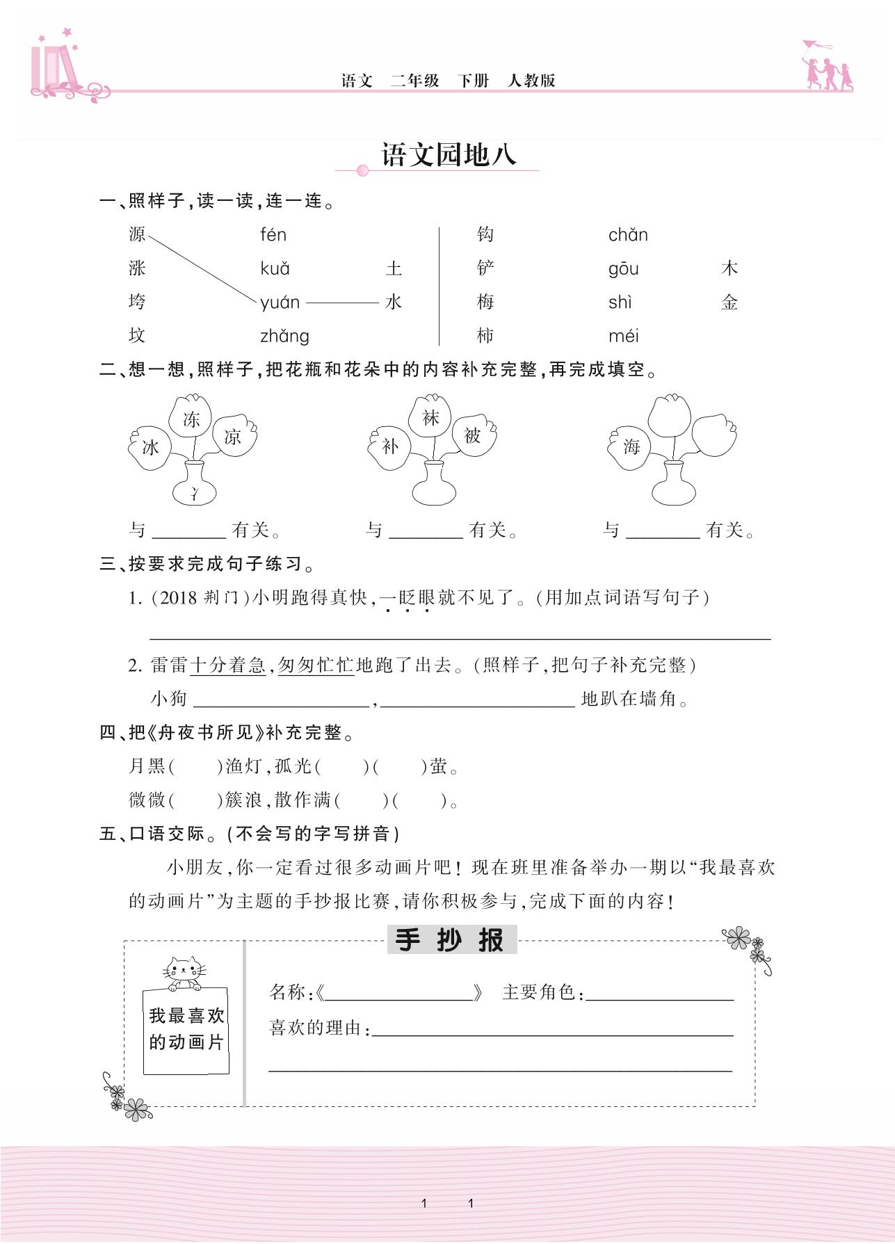 2021下册二年级语文人教版 第八单元 课文——语文园地八