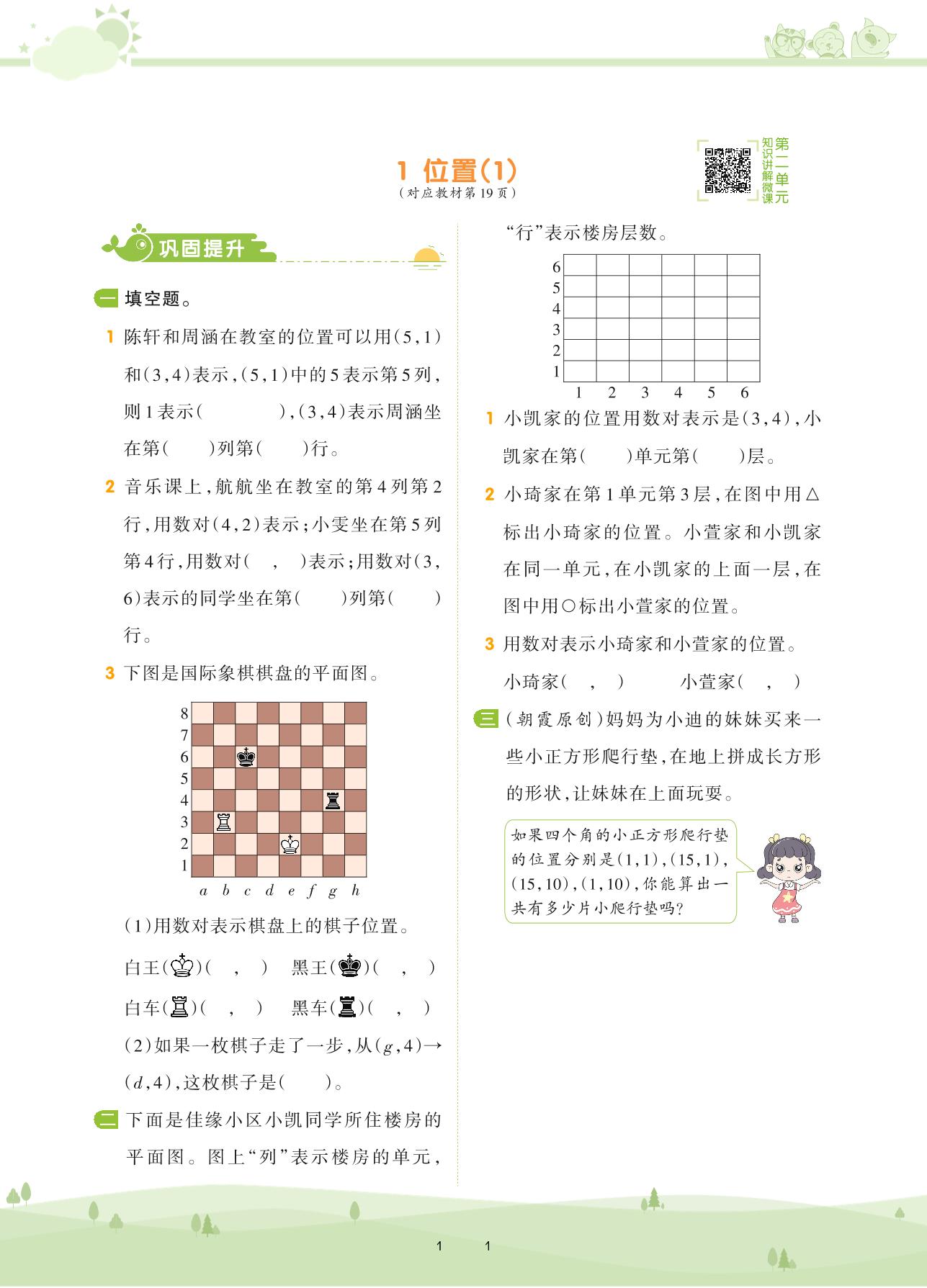 2020上册五年级数学人教版 第二单元 位 置——1 位置(1)