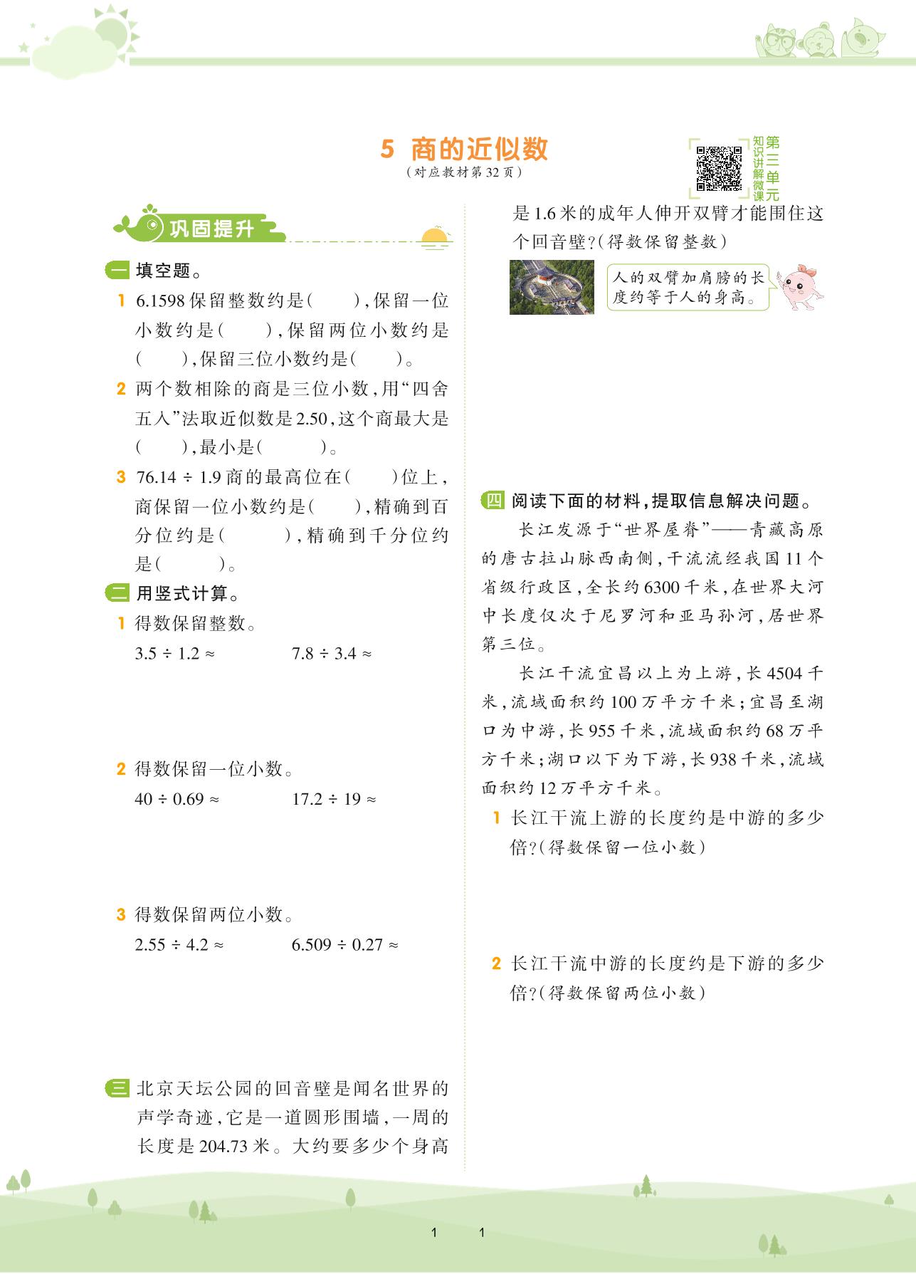 2020上册五年级数学人教版 第三单元 小数除法——5 商的近似数