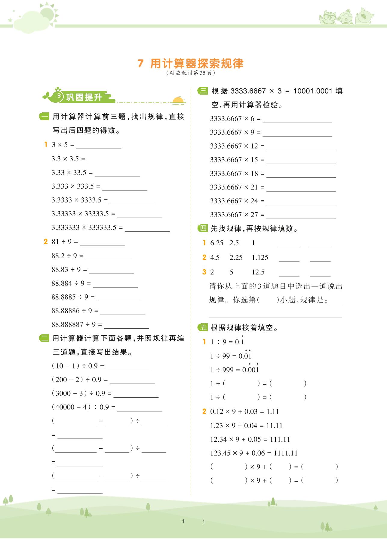 2020上册五年级数学人教版 第三单元 小数除法——7 用计算器探索规律