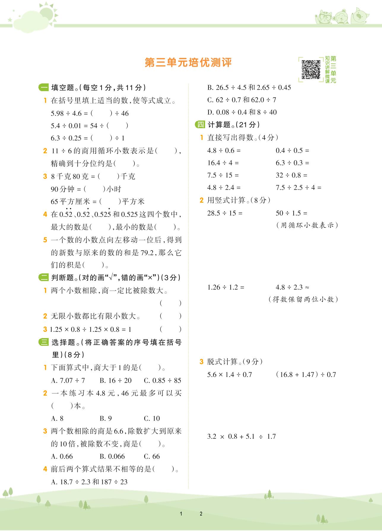 五年级数学人教版上册单元卷