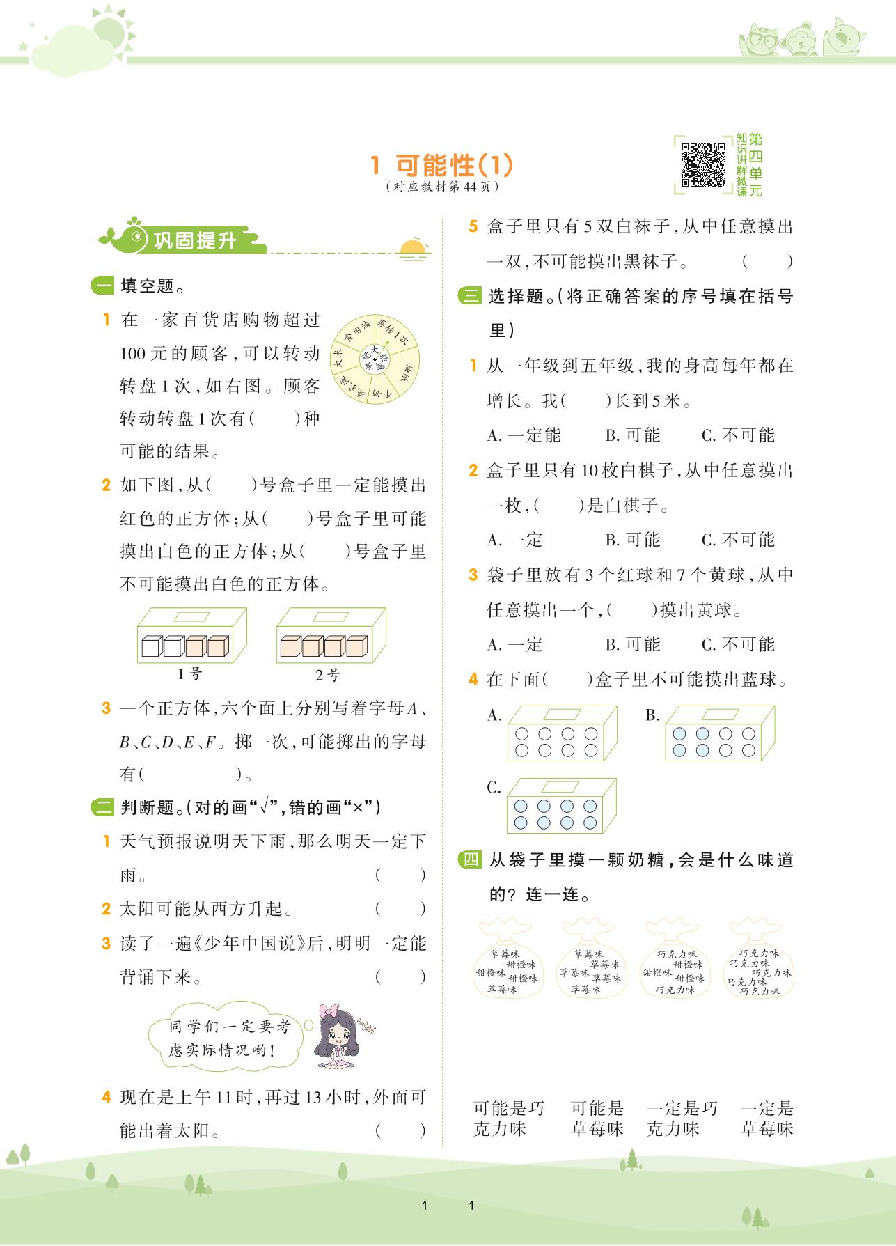 2020上册五年级数学人教版 第四单元 可能性——1 可能性(1)