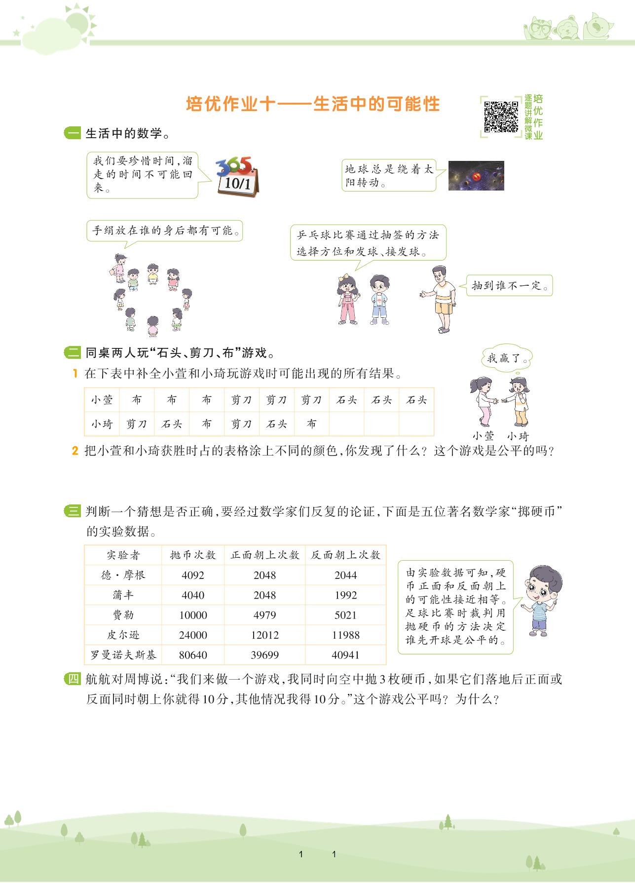 2020上册五年级数学人教版 第四单元 可能性——培优作业十 生活中的可能性