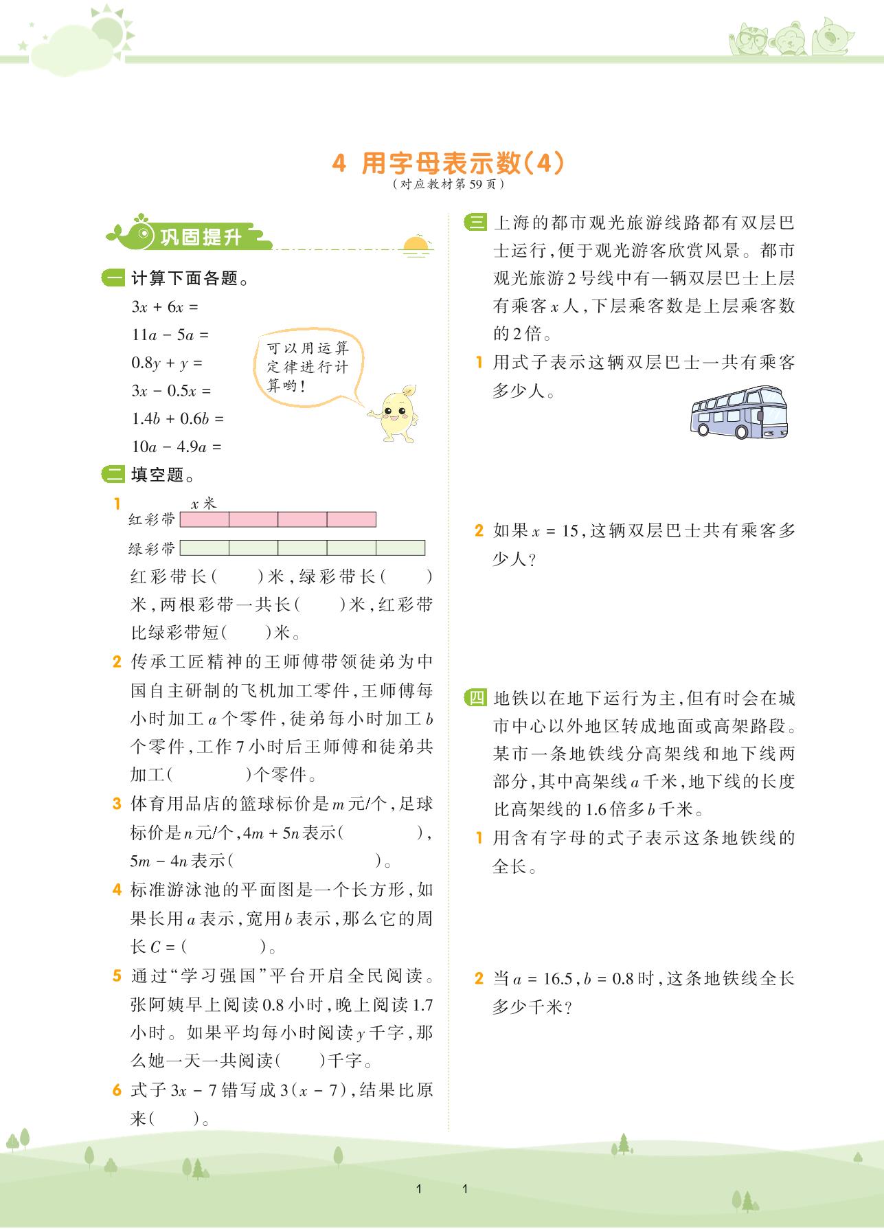 2020上册五年级数学人教版 第五单元 简易方程——4 用字母表示数(4)