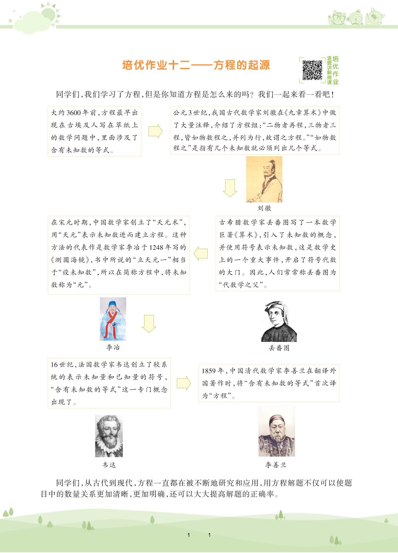 2020上册五年级数学人教版 第五单元 简易方程——培优作业十二 方程的起源