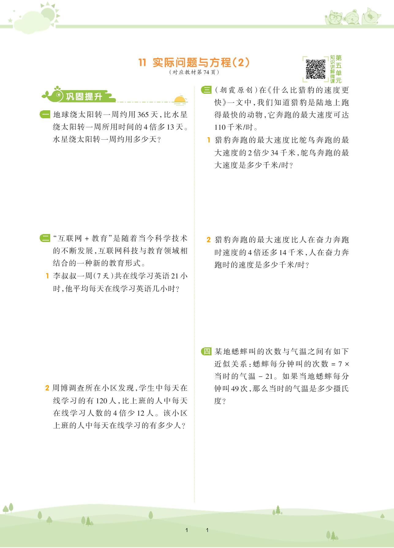 2020上册五年级数学人教版 第五单元 简易方程——11 实际问题与方程(2)
