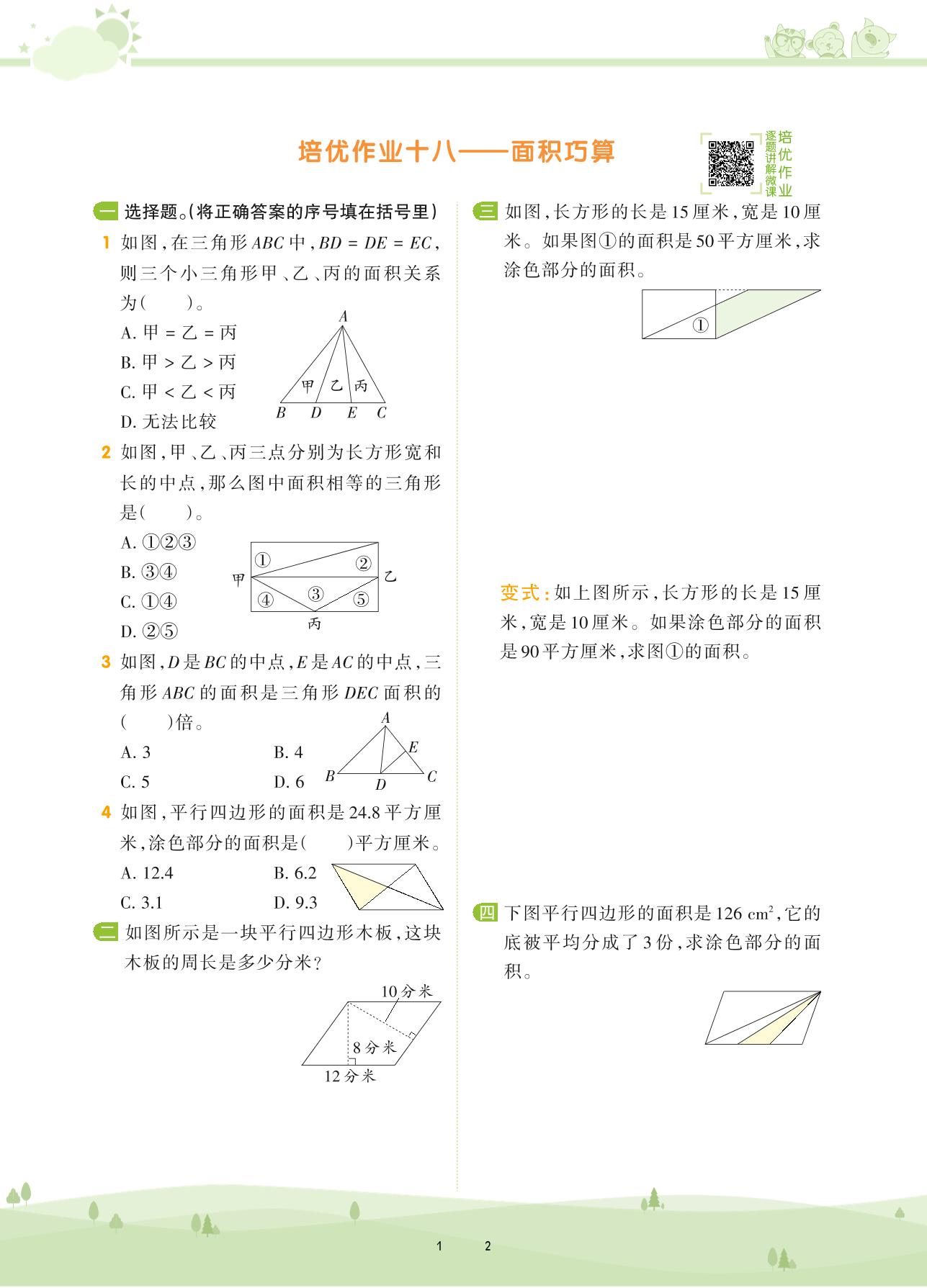 2020上册五年级数学人教版 第六单元 多边形的面积——培优作业十八 面积巧算