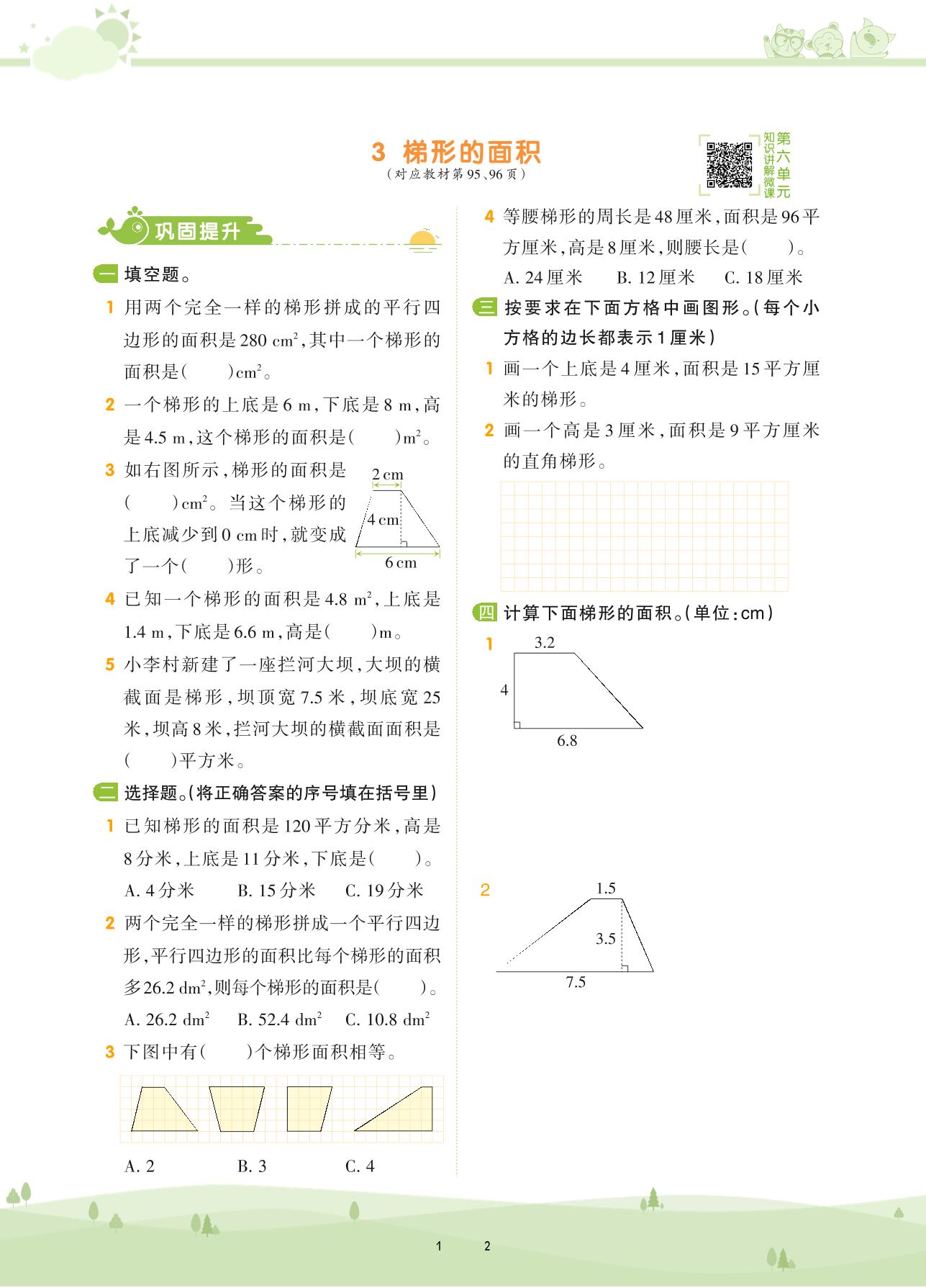 2020上册五年级数学人教版 第六单元 多边形的面积——3 梯形的面积