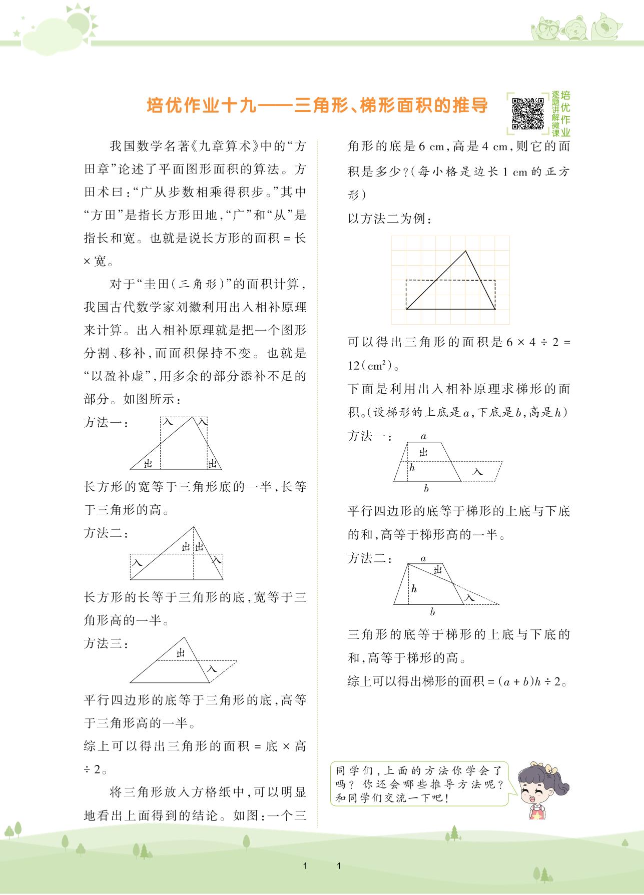2020上册五年级数学人教版 第六单元 多边形的面积——培优作业十九 三角形、梯形面积的推导