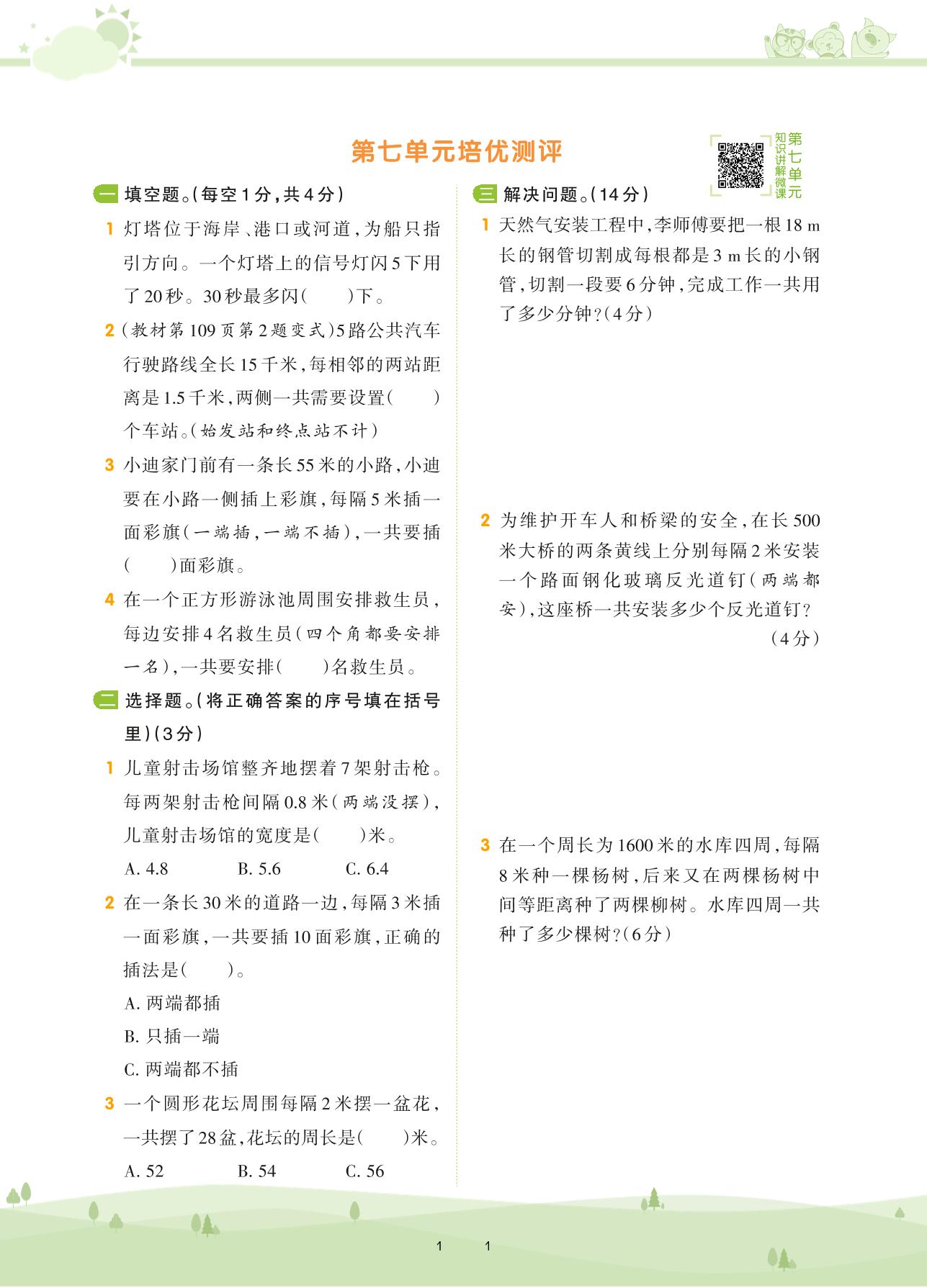 2020上册五年级数学人教版 第七单元培优测评