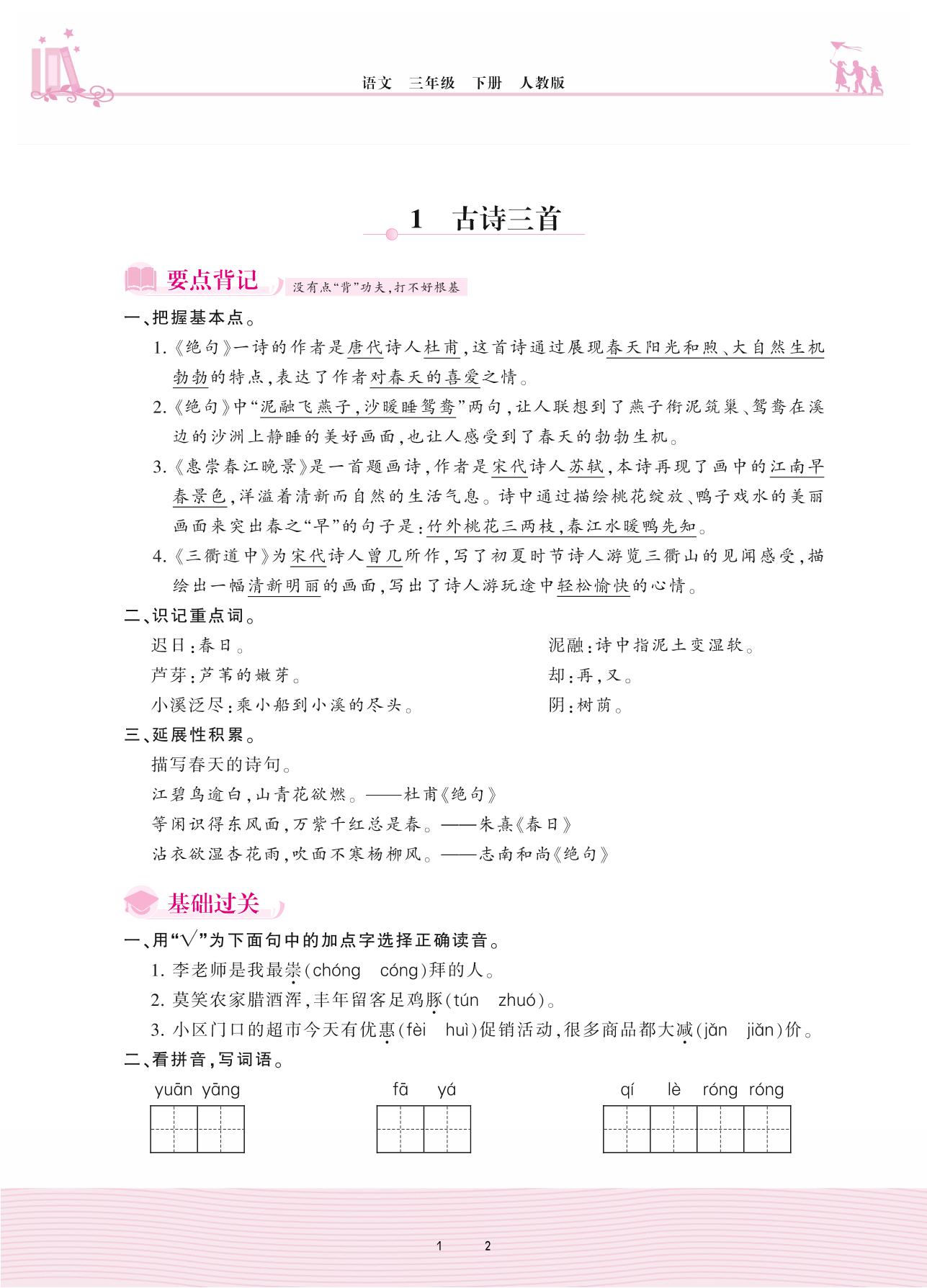 2021下册三年级语文人教版 第一单元——1 古诗三首