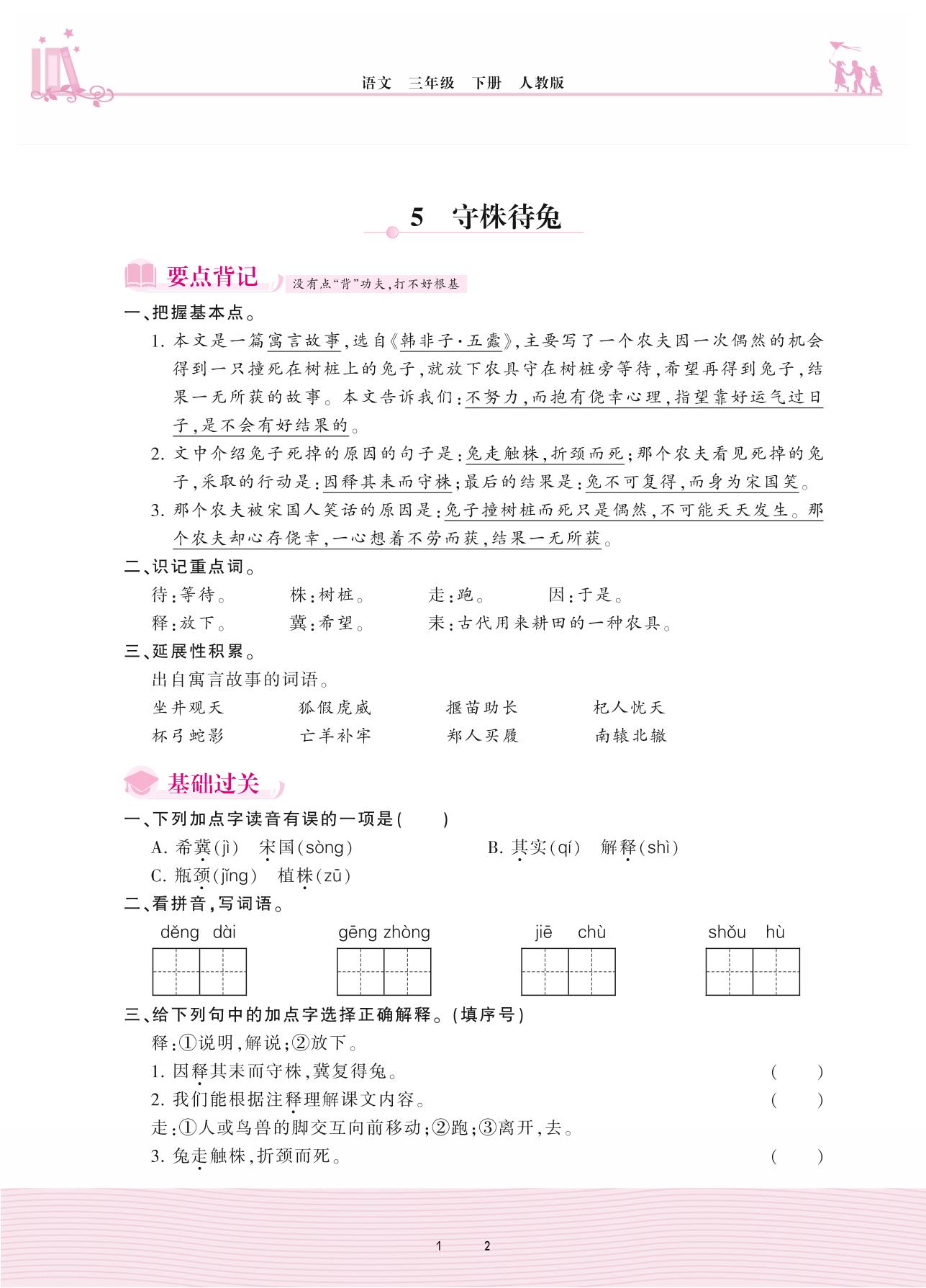 2021下册三年级语文人教版 第二单元——5 守株待兔