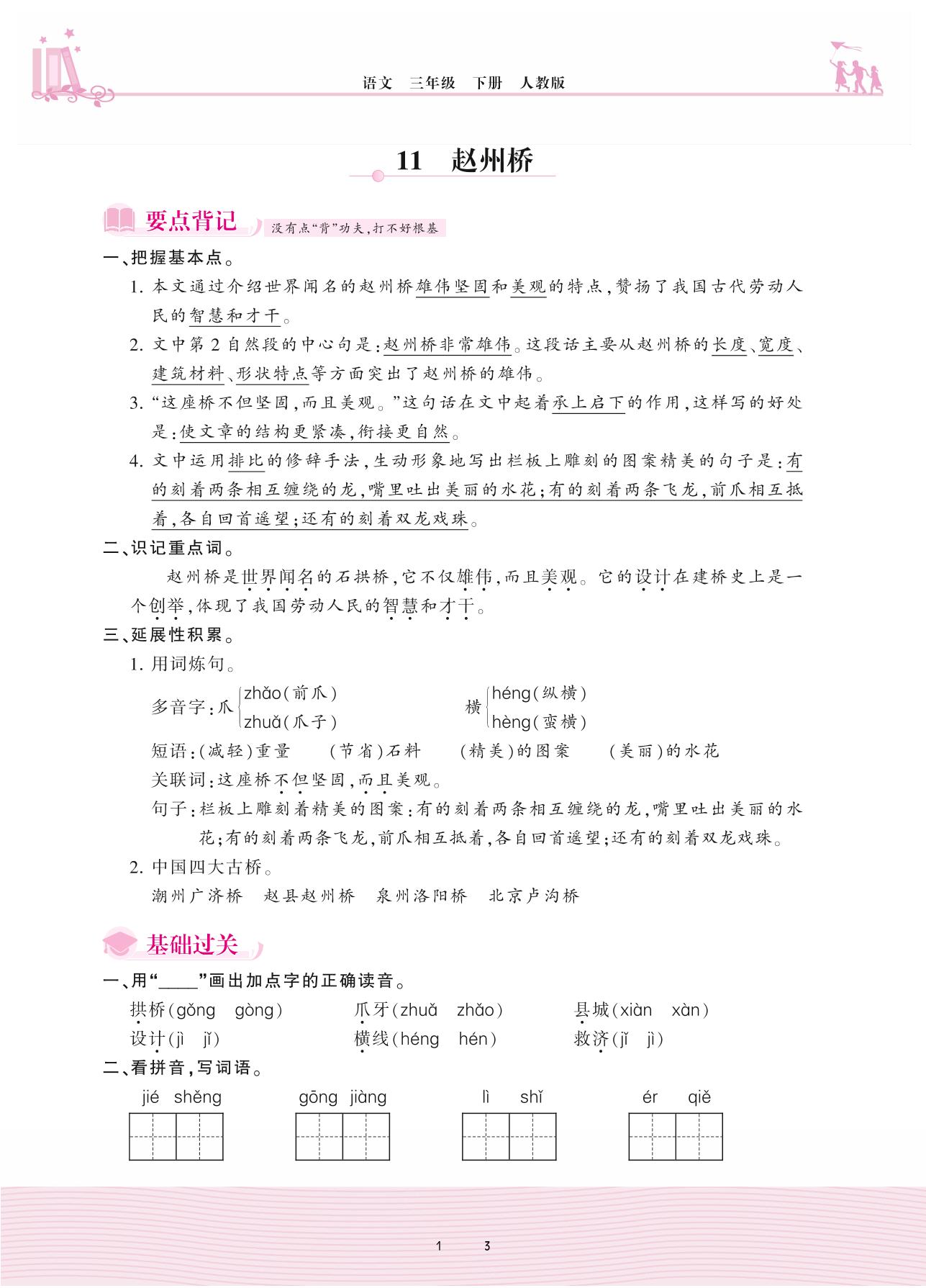 2021下册三年级语文人教版 第三单元——11 赵州桥