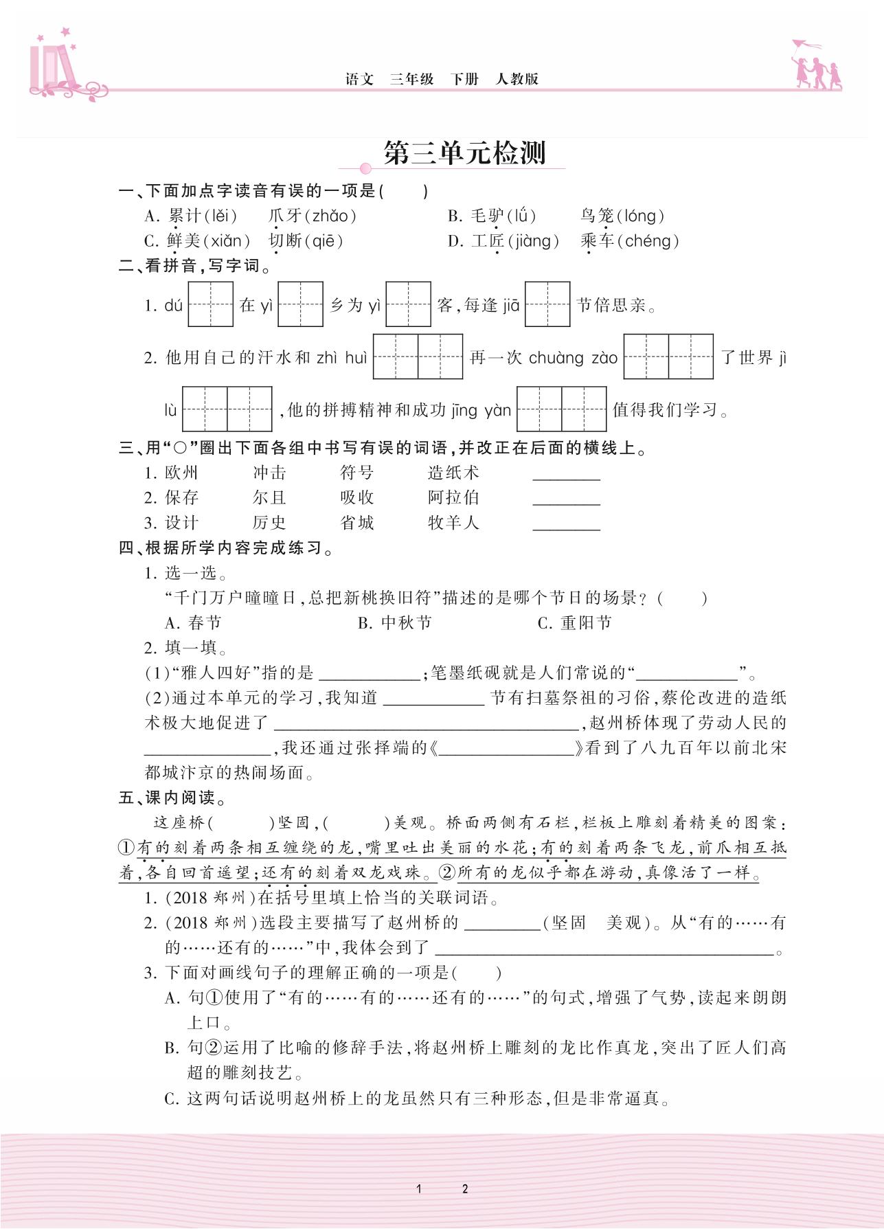2021下册三年级语文人教版 第三单元——第三单元检测