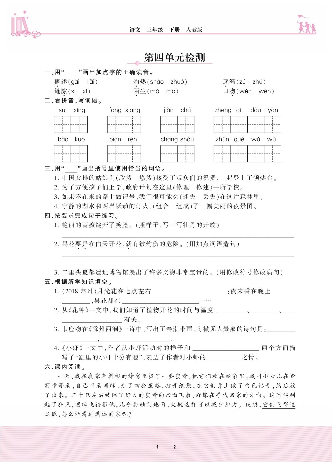 2021下册三年级语文人教版 第四单元——第四单元检测