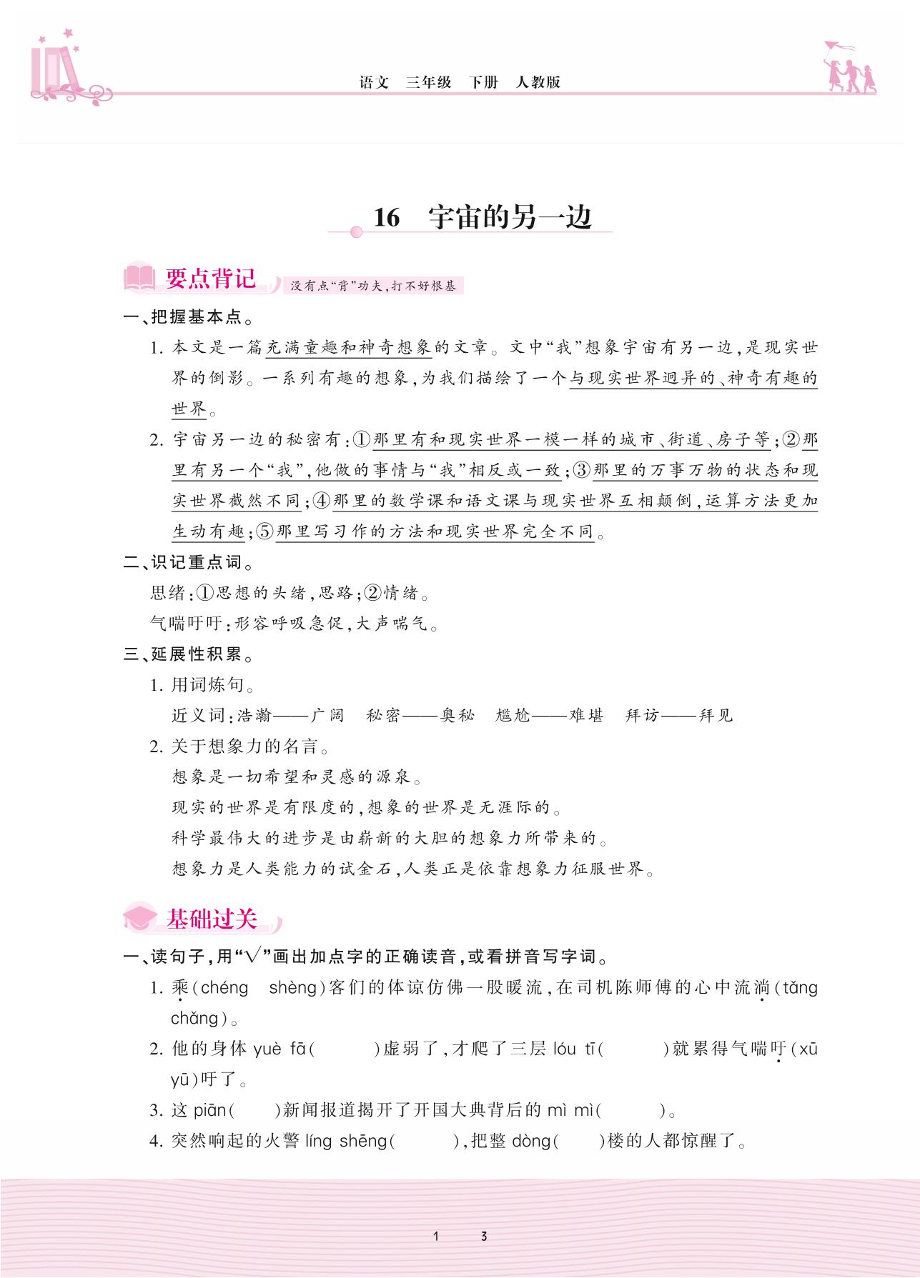 2021下册三年级语文人教版 第五单元——16 宇宙的另一边