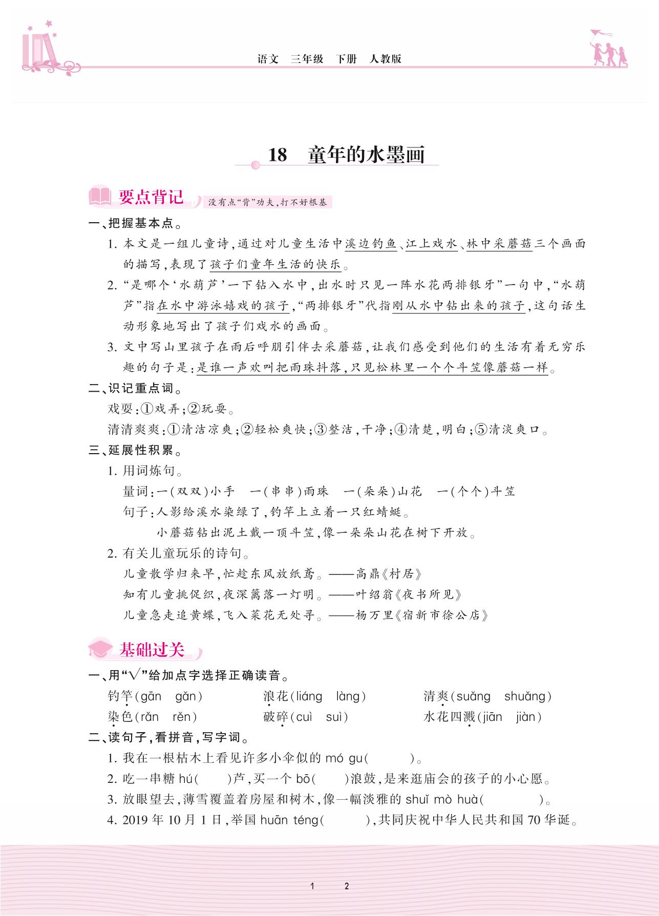 2021下册三年级语文人教版 第六单元——18 童年的水墨画