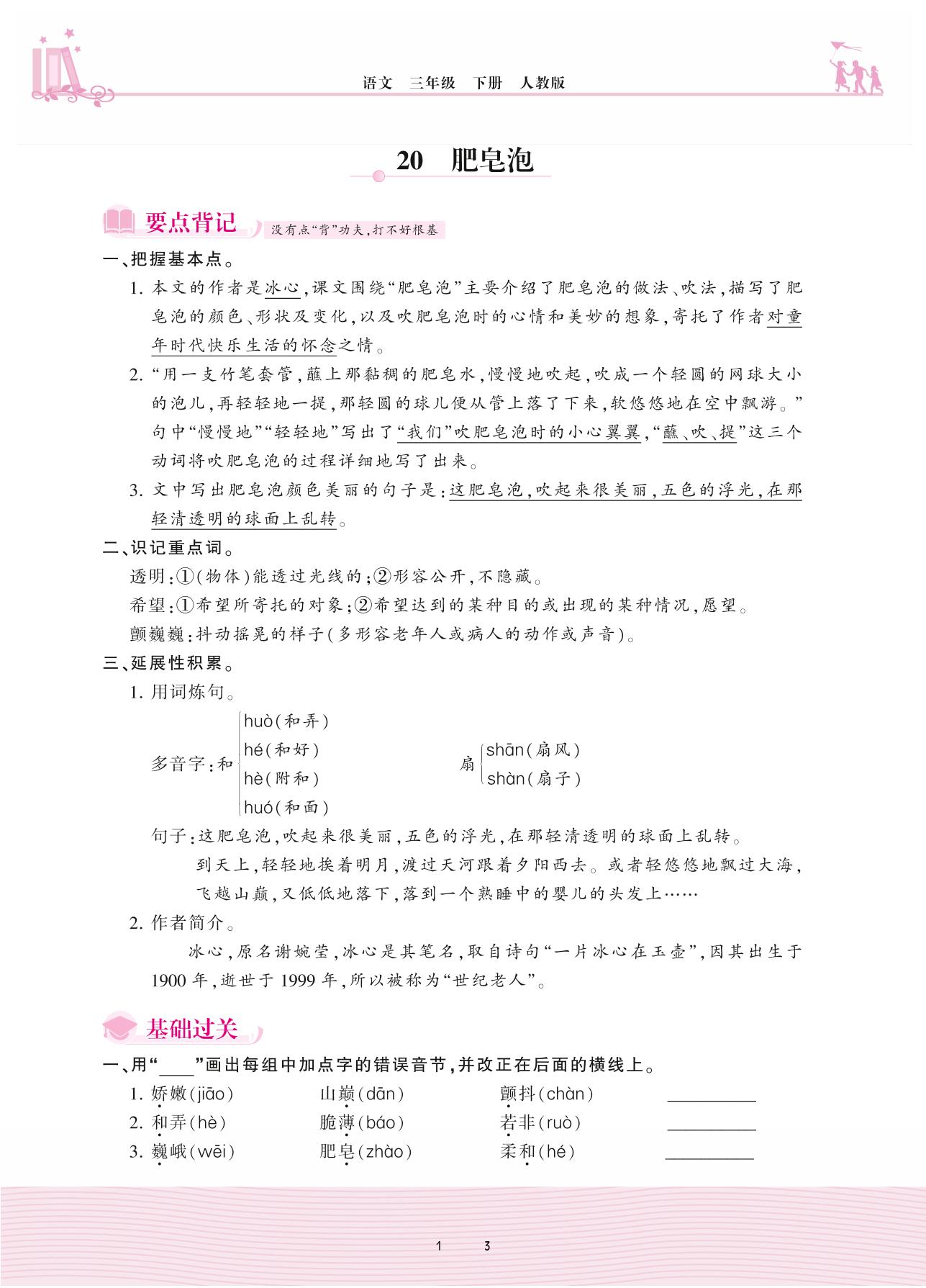 2021下册三年级语文人教版 第六单元——20 肥皂泡
