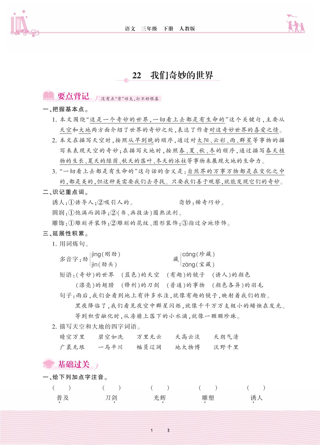 2021下册三年级语文人教版 第七单元——22 我们奇妙的世界