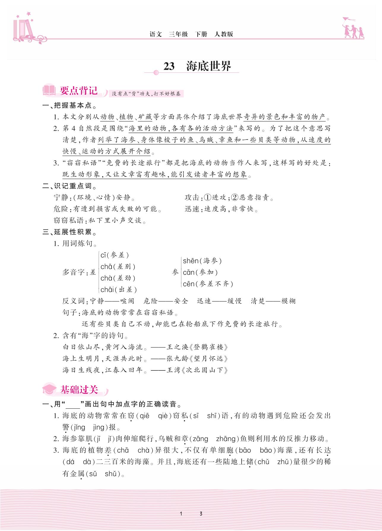 2021下册三年级语文人教版 第七单元——23 海底世界