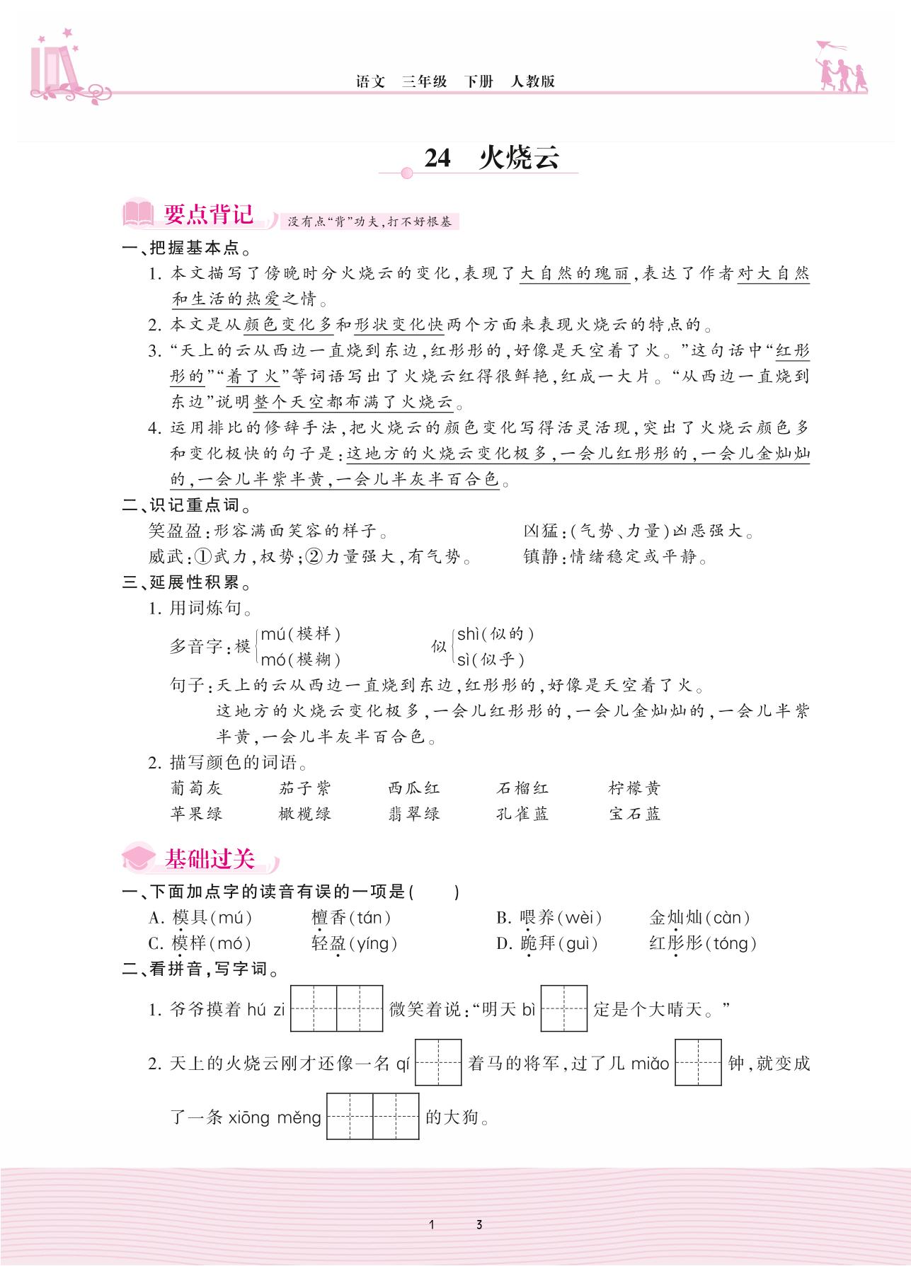 2021下册三年级语文人教版 第七单元——24 火烧云