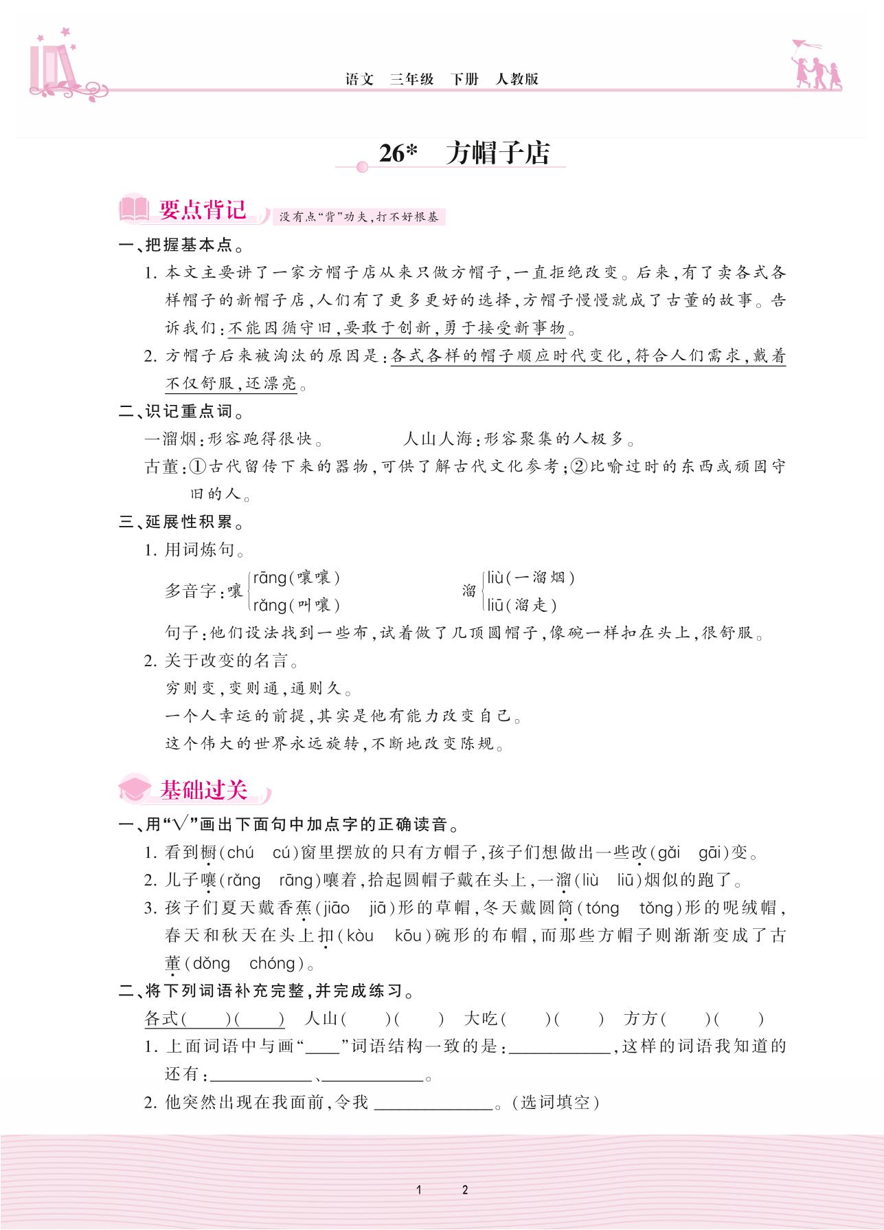 2021下册三年级语文人教版 第八单元——26 方帽子店