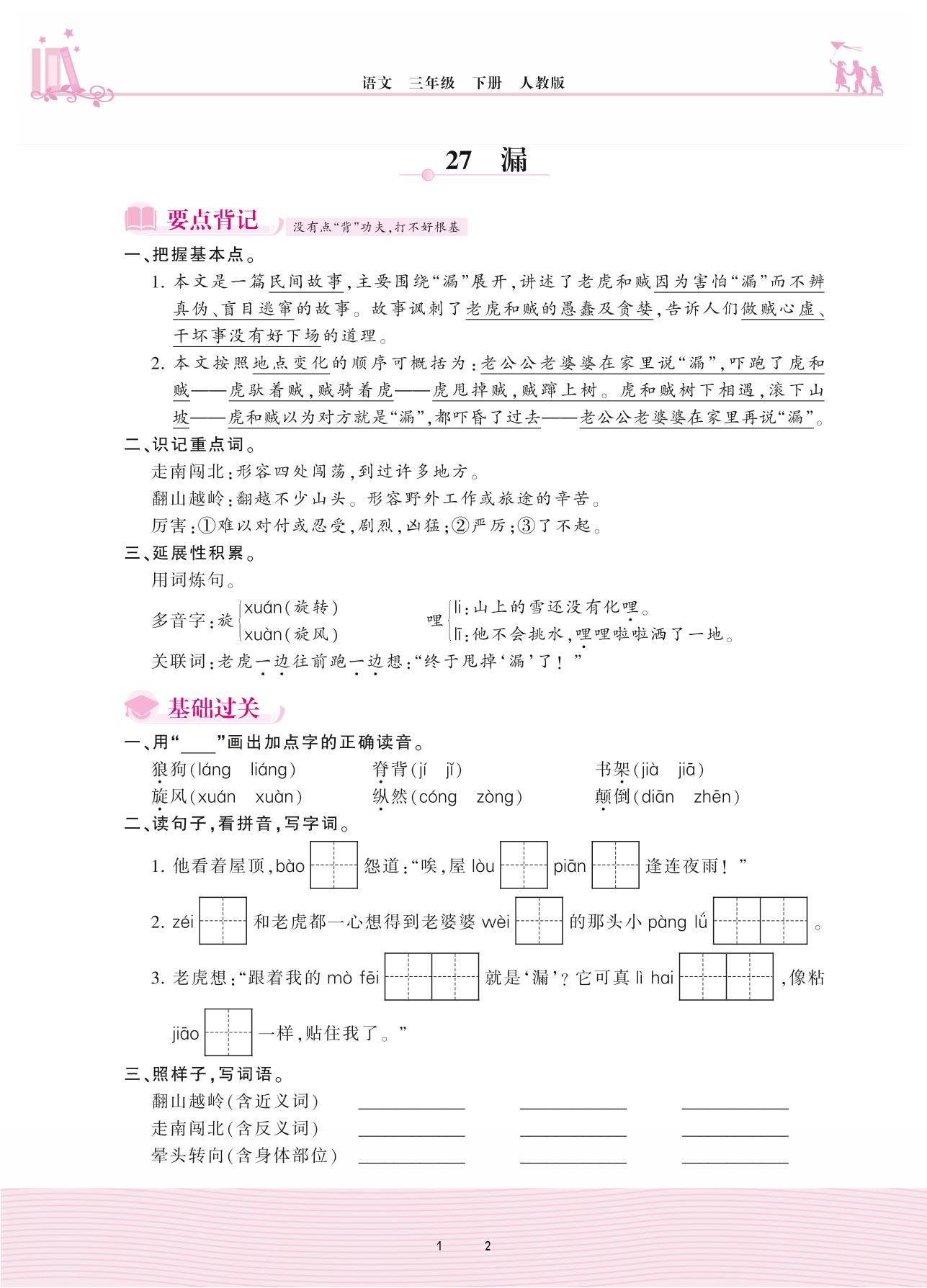 2021下册三年级语文人教版 第八单元——27 漏