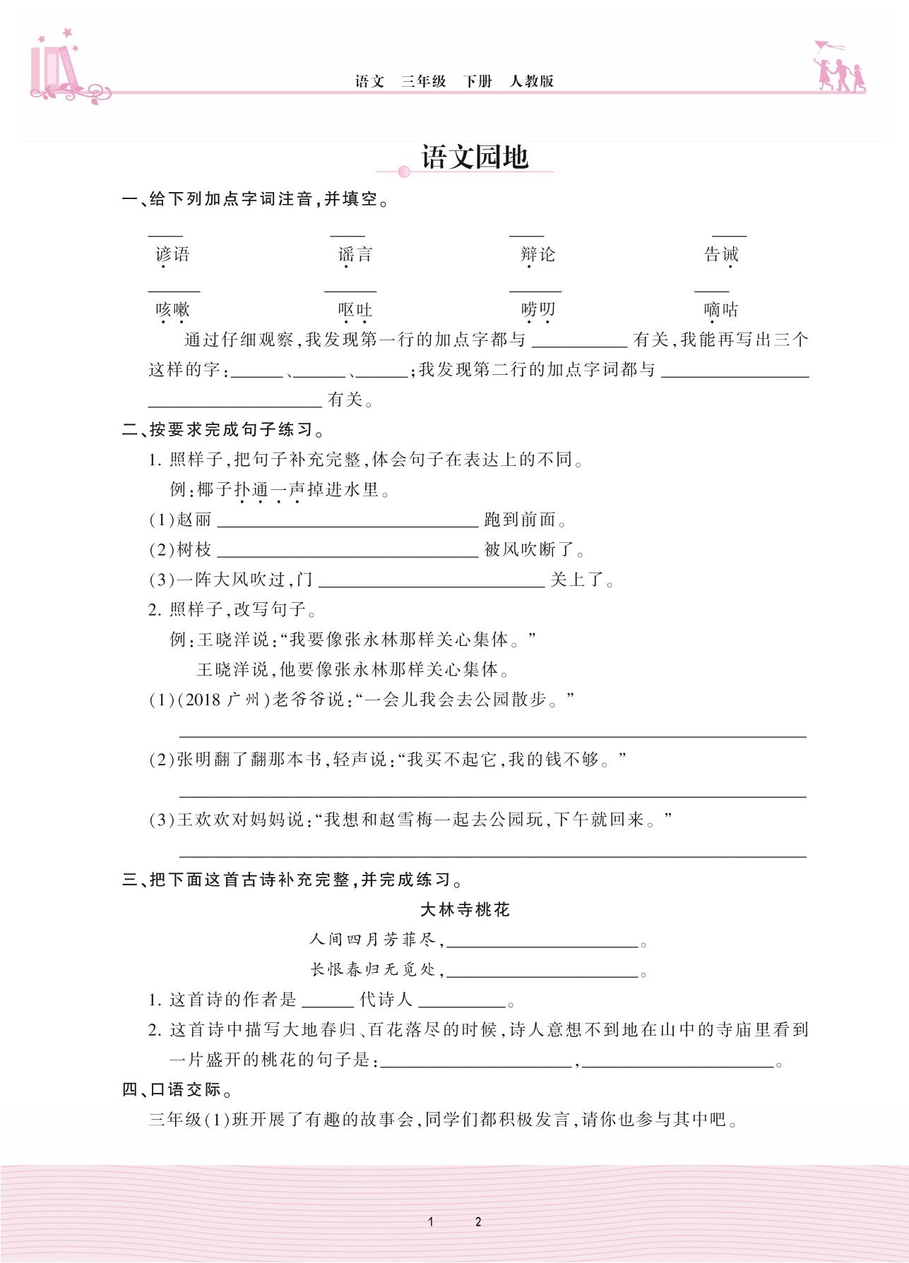 三年级语文人教版下册单元卷