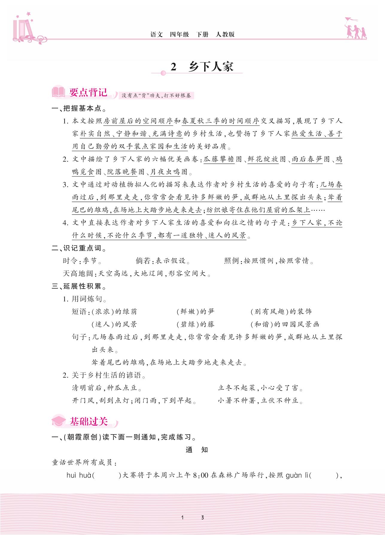 2021下册四年级语文人教版 第一单元——2 乡下人家