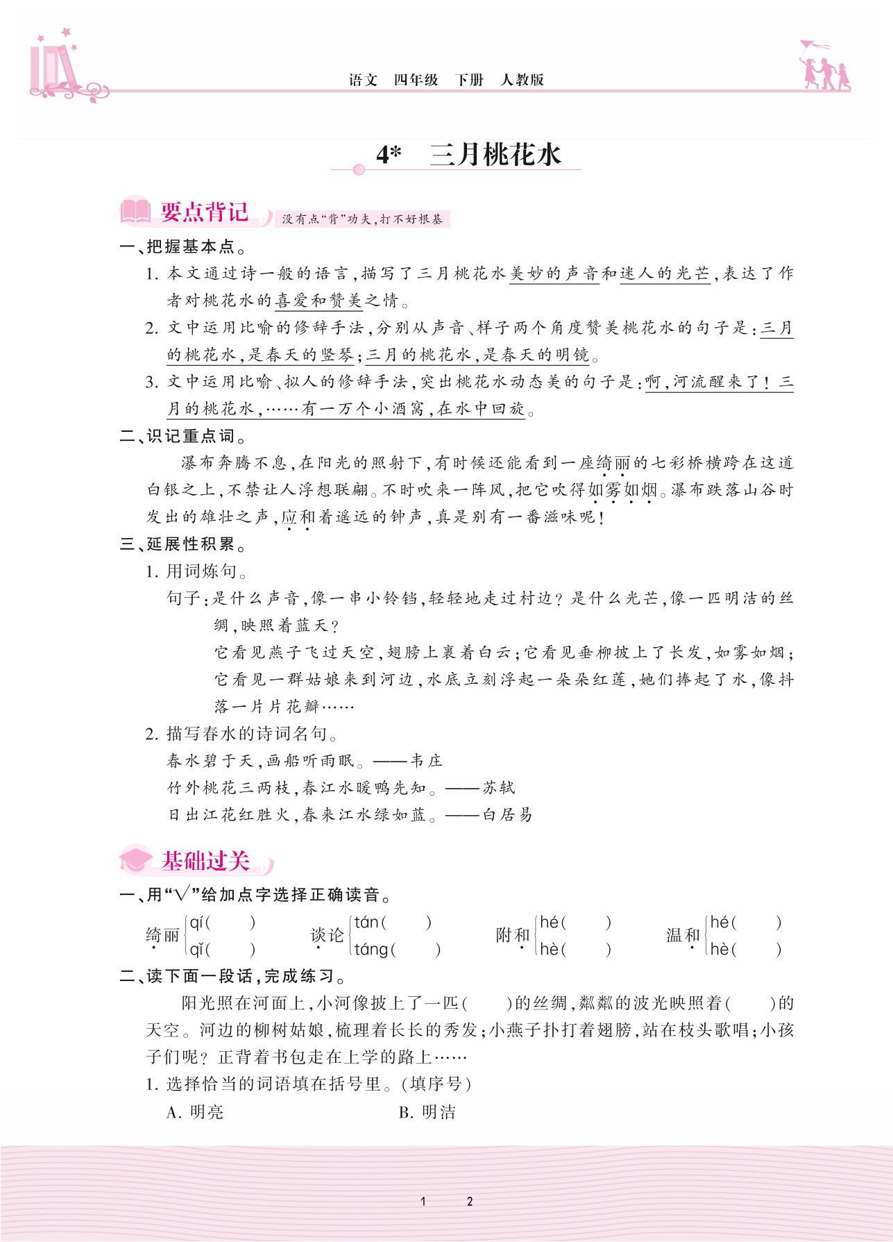 2021下册四年级语文人教版 第一单元——4 三月桃花水