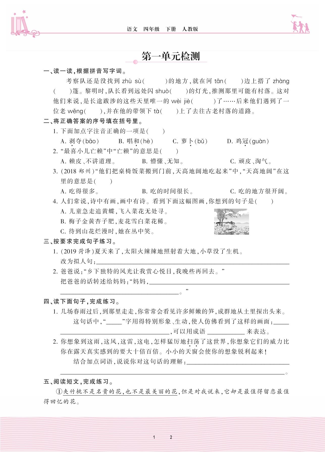 2021下册四年级语文人教版 第一单元——第一单元检测
